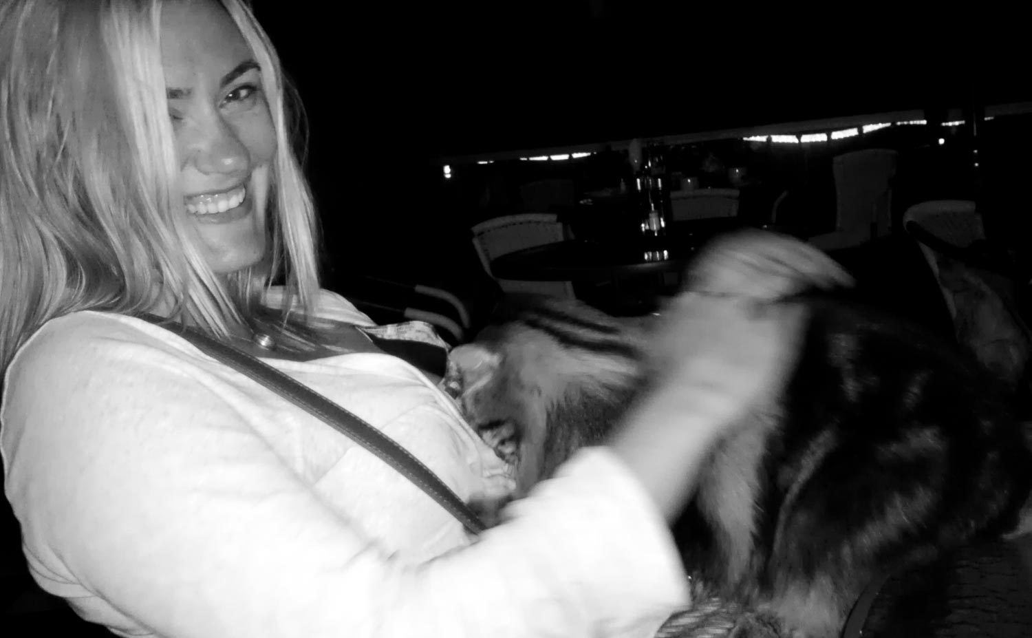 After the tour, Becca and I walked back to The Brighton (a hotel and cafe) for some early evening coffee and dessert and a spectacular view from the hotel’s patio. It was a very pleasant and peaceful way to relax before kicking off Saturday night activities. As we were sitting and chatting and taking photos, one of the hotel cats magically appeared and jumped into Becca’s lap, kneading her for a bit before settling in for a nap. Peaceful times all around.