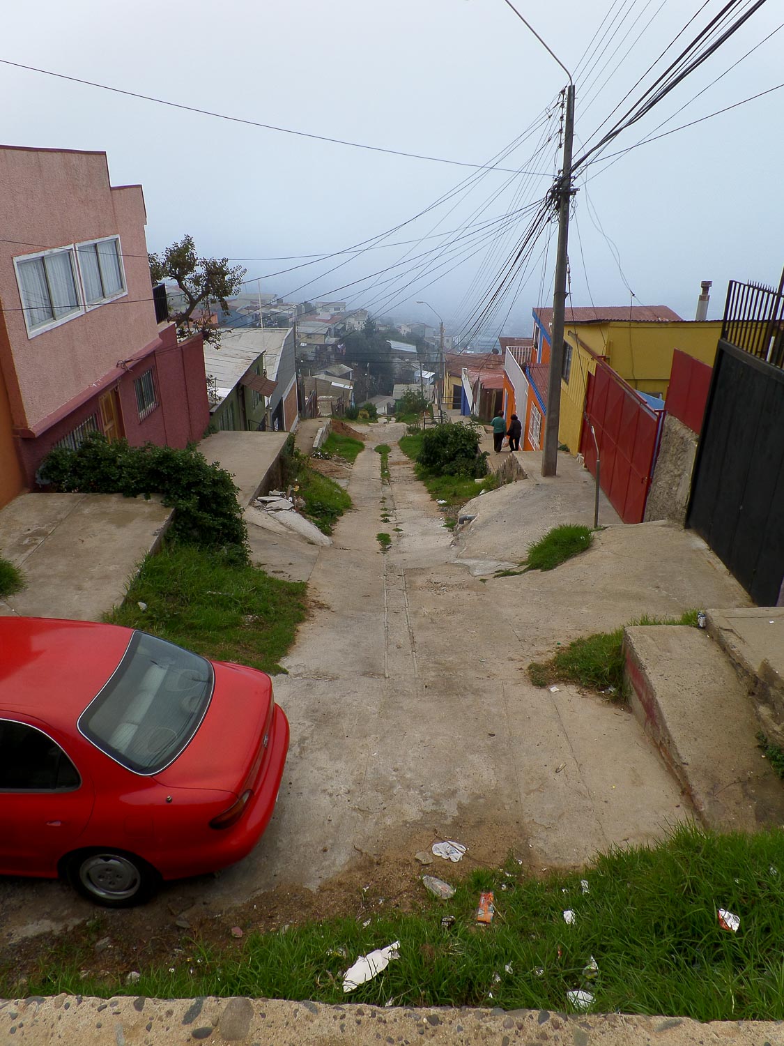 After lunch, we started our own walking tour, wandering through various parts of the city that we knew weren’t going to be covered by the “official” walking tour. We walked through a few plazas and shopping districts until we found ourselves by a church at the base of one of the city’s hills. So we started walking up. And up. And up. And up. Every time we thought we were getting close to the peak, we would round a corner and see that there was still more to go. There weren’t many people out and about since the hills are mostly residential, but we did run into a few friendly locals. Taxis whizzed by us constantly, mostly to bring people home from work. There’s no way buses could navigate those hills safely, so unless you want to spend an hour or so walking up a steep hill to get home, you’re going to take a taxi. We saw scores of colorful and uniquely designed houses, rundown cars, stray dogs, beautiful views of the city below, and even a halfway-decent soccer pitch, though it was made entirely of dirt.