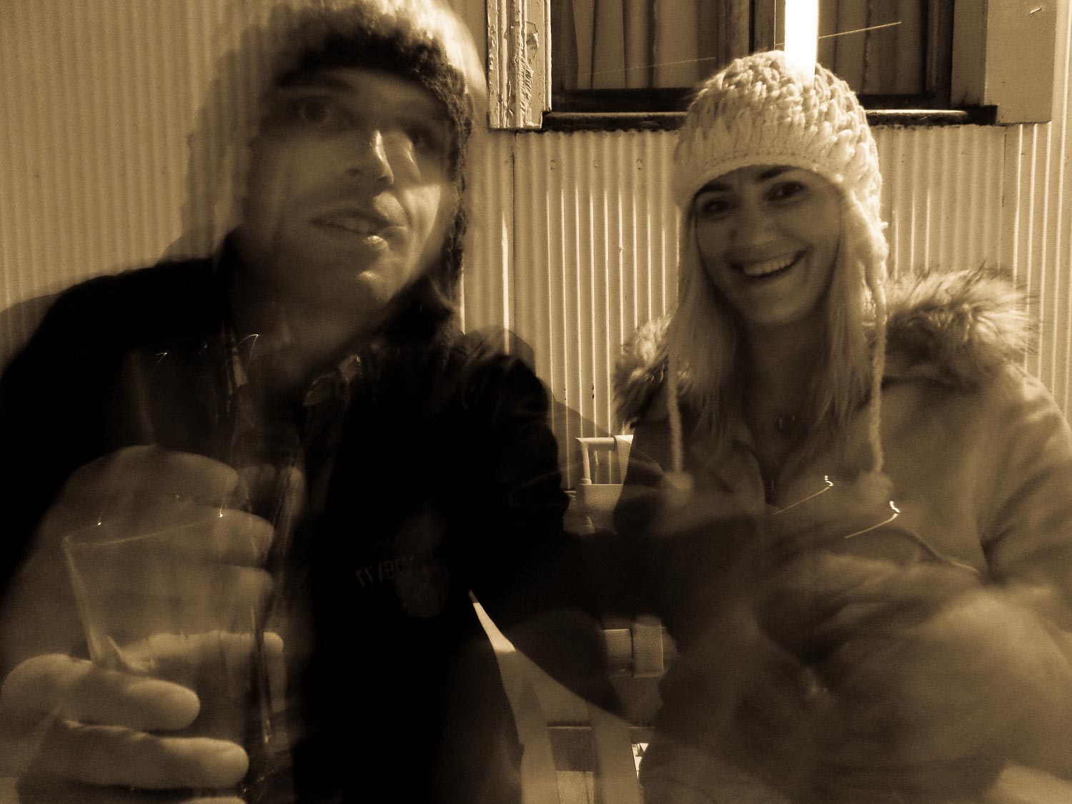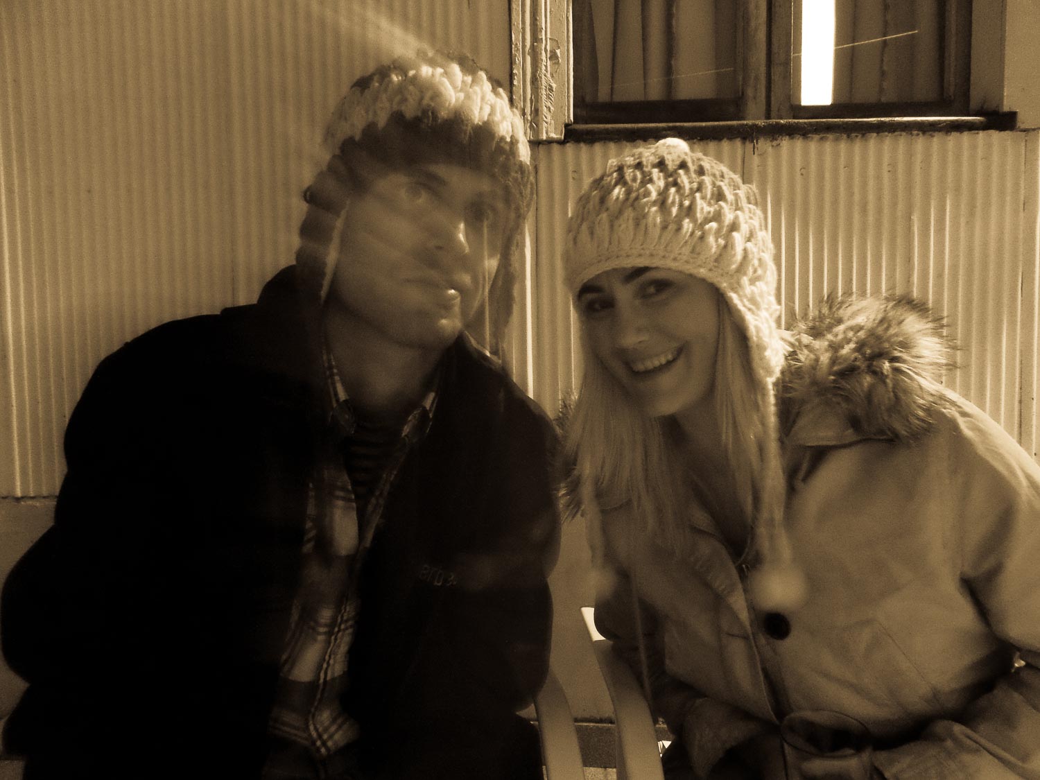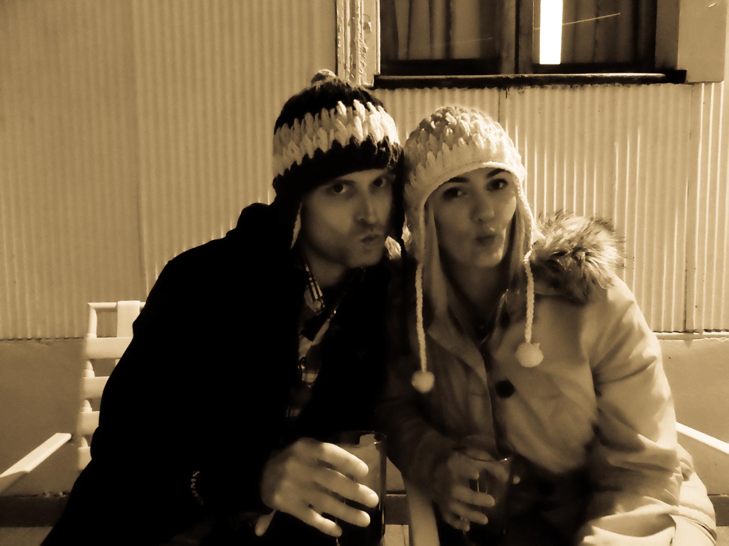 We relaxed at the hostel for a bit before cleaning ourselves up and going out to dinner at a fantastic tapas place just up the road from us. As we sat on the couch by the fireplace, surrounded by paintings and art, we felt as if we were dining in someone’s home. The restaurant looked like a converted house and the atmosphere was warm and cozy, like we were over at a friend’s place for dinner. Once again, we indulged in the two-for-one reserve bottle deal and took the second bottle immediately back to our private balcony. Donning the matching wool hats we had purchased from a street vendor only a few hours prior, we tested the self-timer function on Becca’s new camera with a faux-honeymoon photo shoot. Given the increasing level of intoxication, it took a few iterations of fumbling with camera settings and comically-blurred photos before we shot some winners.