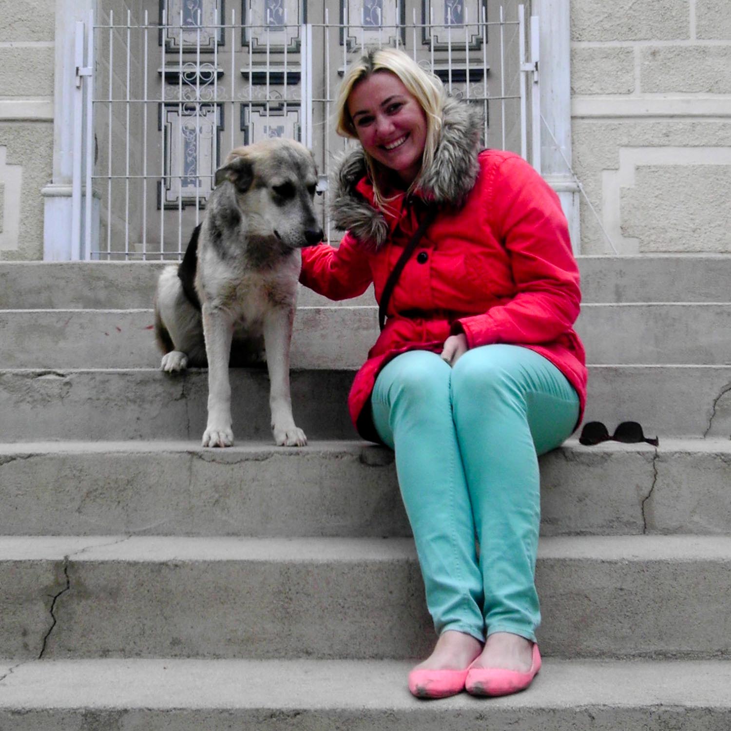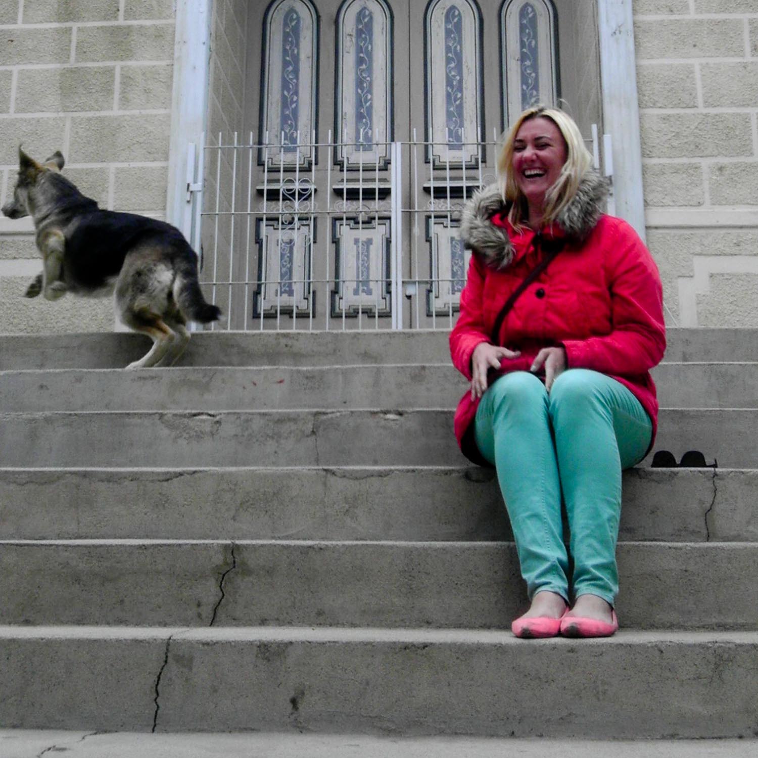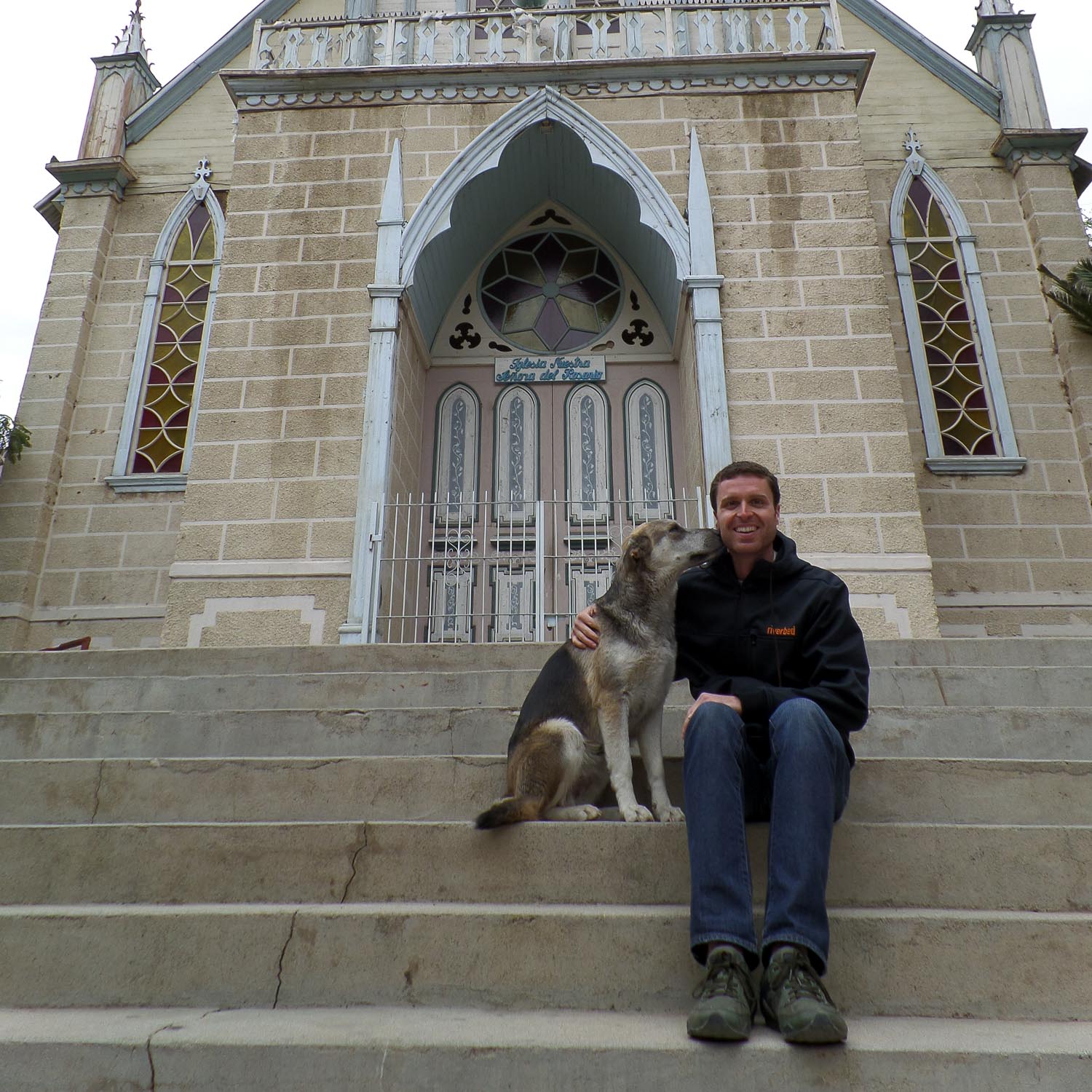 After lunch, we drove to a few more vistas with great views of the valley and then to a small town to stop for souvenirs and gifts. In lieu of souvenir shopping, Becca and I played on the children’s playground in the main square and also played with some of the local stray dogs. One of them gave me a kiss as we were posing for the camera, but deserted Becca on the steps of the church when it was her turn for a photo. Ice cold!