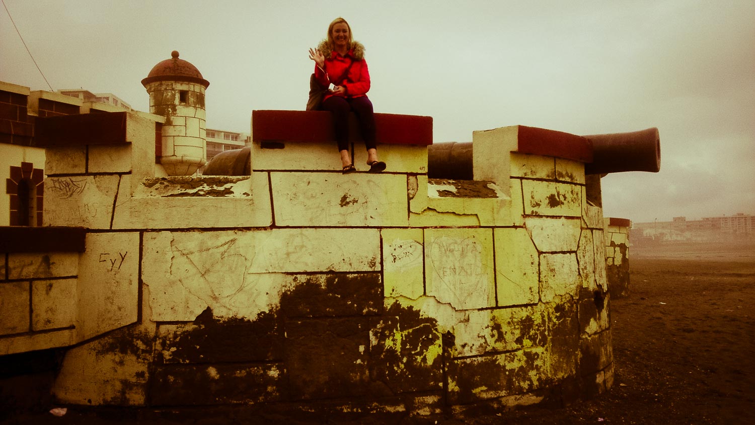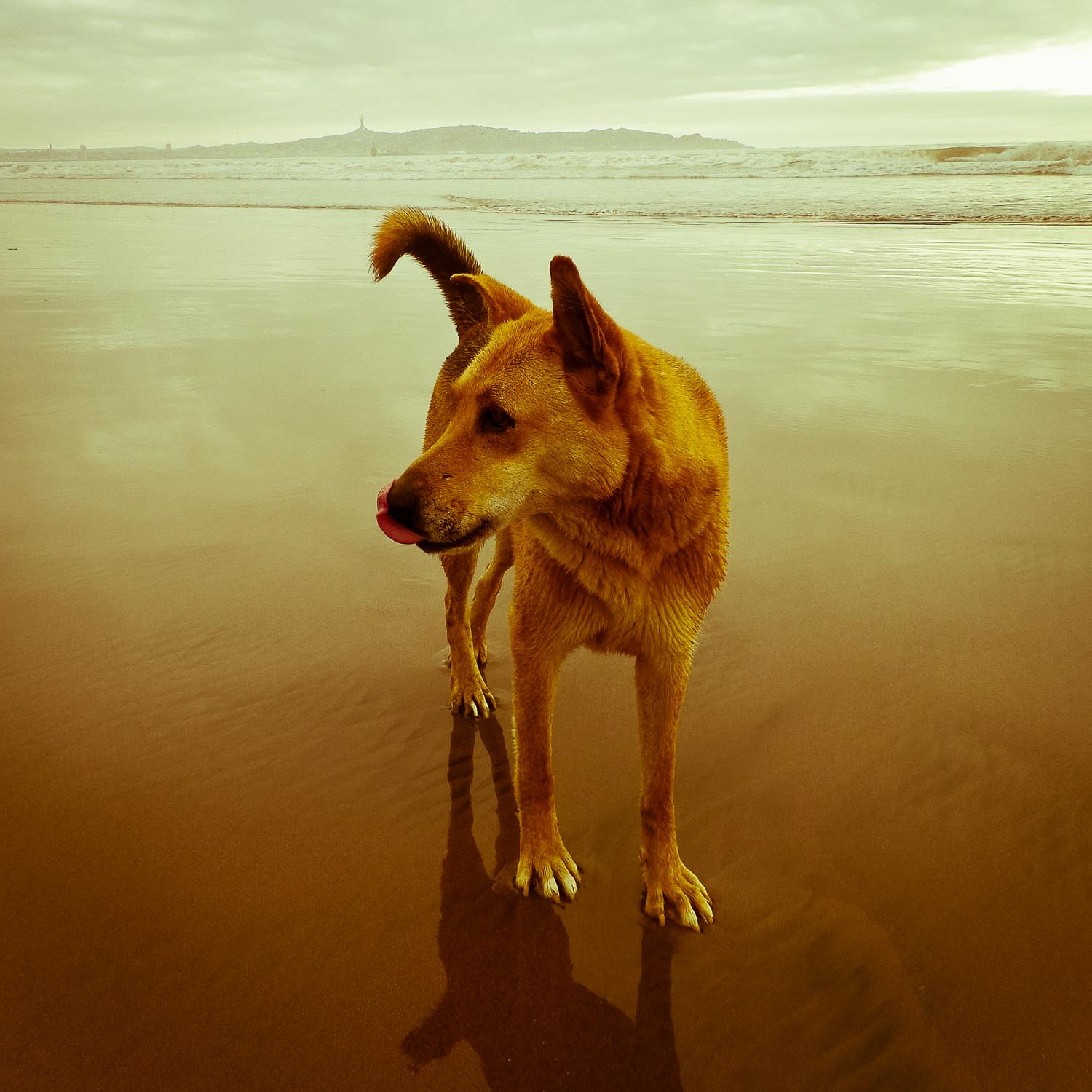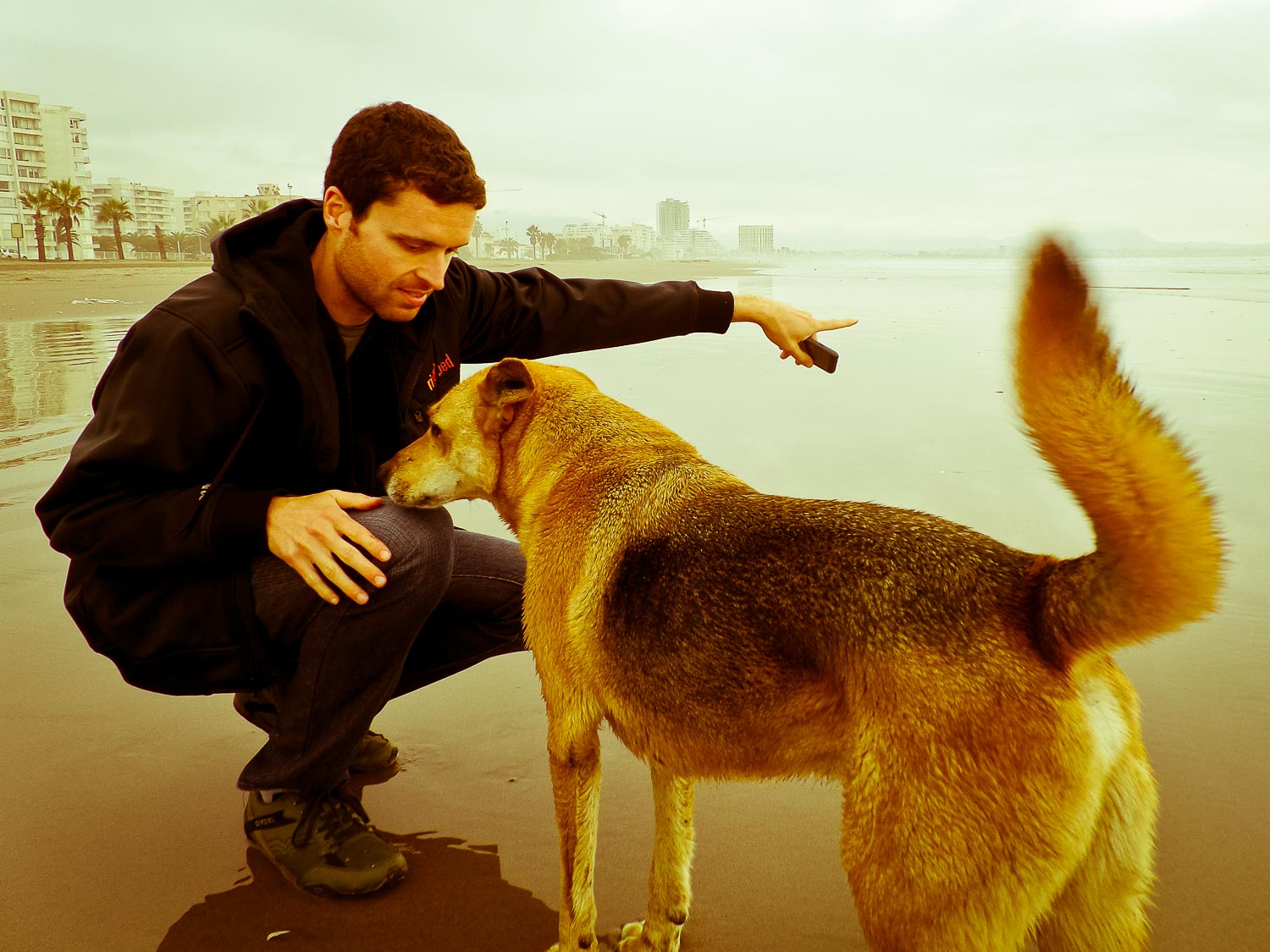 We ended up walking all the way to Coquimbo, a neighboring city about the same size as La Serena. It was about a 9-mile walk, which occupied the rest of our afternoon as we leisurely made our way along the coast. There wasn’t much to see besides a battleship on the horizon and the occasional stray dog that would accompany us for a bit. One dog in particular stayed with us for a good while, so he and I played fetch with whatever I could find. It brought back memories of playing with dogs at Fort Funston in San Francisco (with the same weather too).