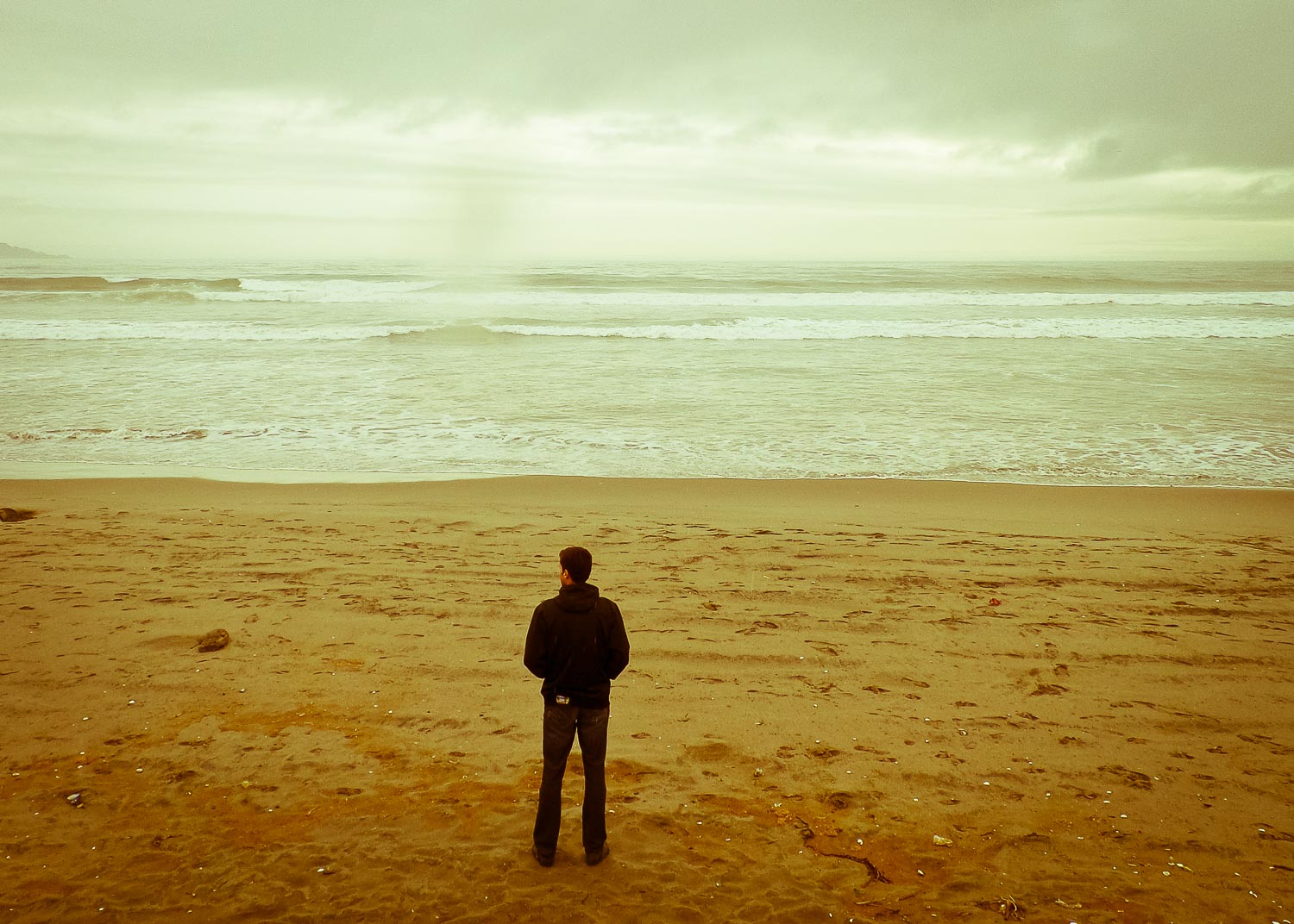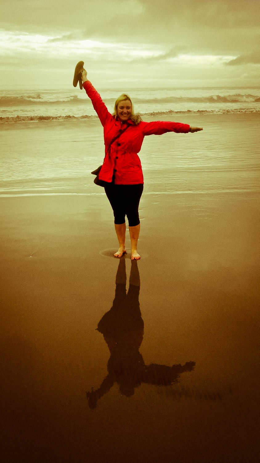 The overcast and rainy weather had washed out our hopes of a northerly boat excursion to see penguins, so the next day we slept in and ambled over to a nearby organic and mostly vegetarian cafe (Ayawasi). Just as was promised in all the reviews we read, the place was charming, the owner was super friendly (and spoke English), and the food was ridiculously good. This place seriously rivaled any cafe or veggie restaurant in San Francisco, which is a damn good compliment. As we sat there with our coffee drinks and listened to the rain outside, we seriously considered spending the entire day reading our books by the fireplace. But as the rain began to let up, we decided to venture out and go for a walk on the beach.