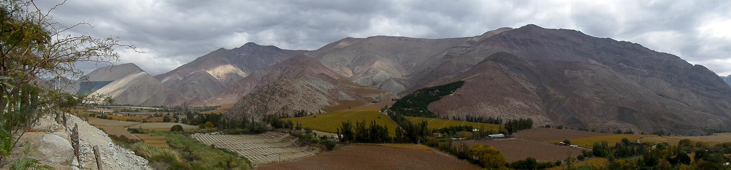 The following morning we embarked on a full day tour of the Elqui Valley, an area known for its good weather, unique vegetation, wines, and pisco. Supposedly, the valley is also known to hippies and crystal worshipers as the most energetic place in the world (in the context of the Earth’s magnetic core), but neither of us noticed anything different. Our tour guide for the day, Gerald, picked us up a bit after 8:00 and warned us that we had the bad luck of visiting the valley on one of the very few non-sunny days of the year. We started the tour with a lesson on papayas and a stop in the small town of Vicuña, known mainly as the birthplace of the famous Chilean poet Gabriela Mistral. Next was a history and geography lesson on the Puclaro Dam (on the Elqui River), which was constructed to improve irrigation to various parts of the valley. This part of Chile is in the middle of a very bad drought, so where there should have been a sizable lake, there was instead a barren, rocky landscape with some sparse greenery.