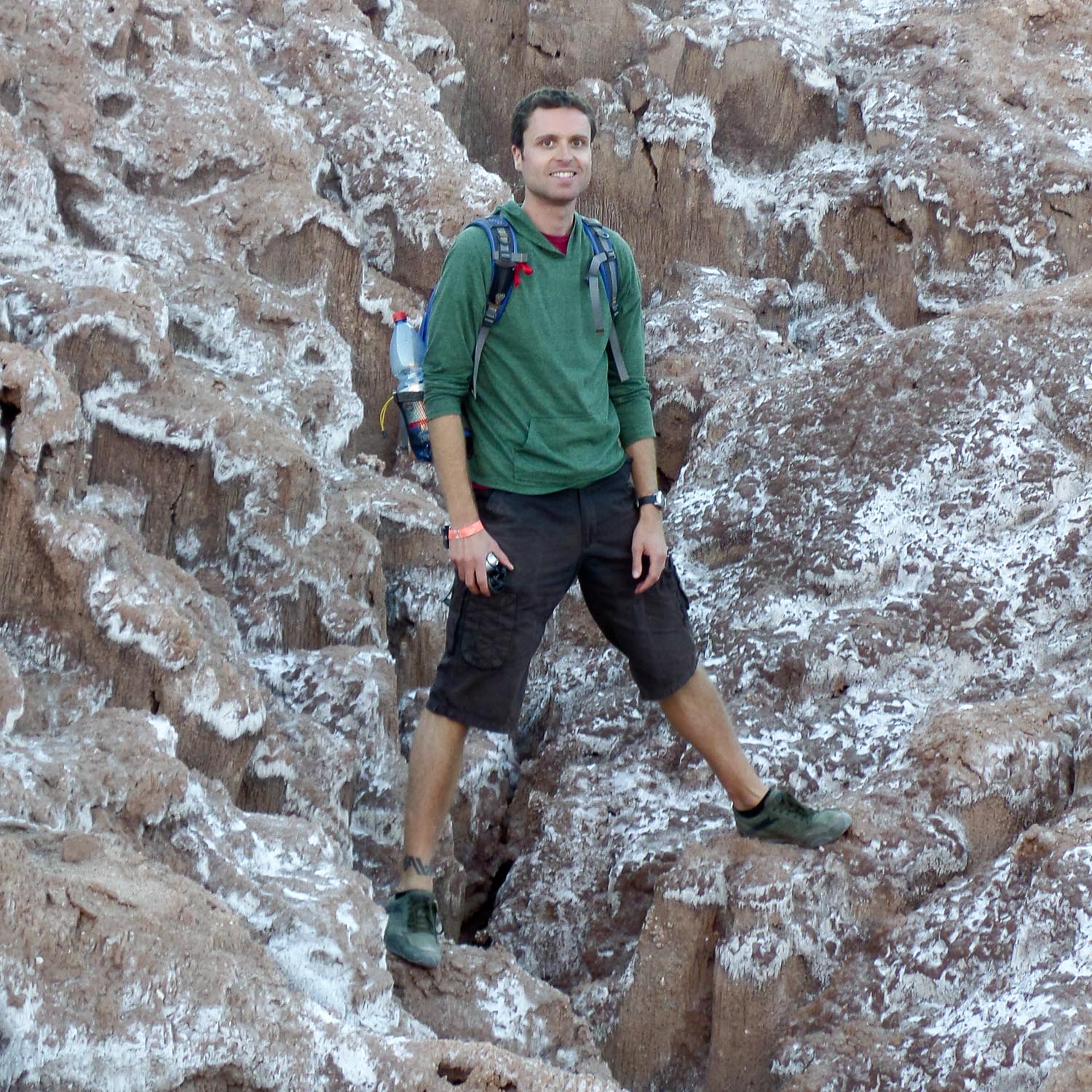 At sunset, we walked up one of the nearby hills for a clearer view of the mountains. Using a salty rock as a tripod, we were able to get a photo of the two of us just as the sun was lighting up the Andes. A lot of good photos came out of this trip, but this one is my favorite.