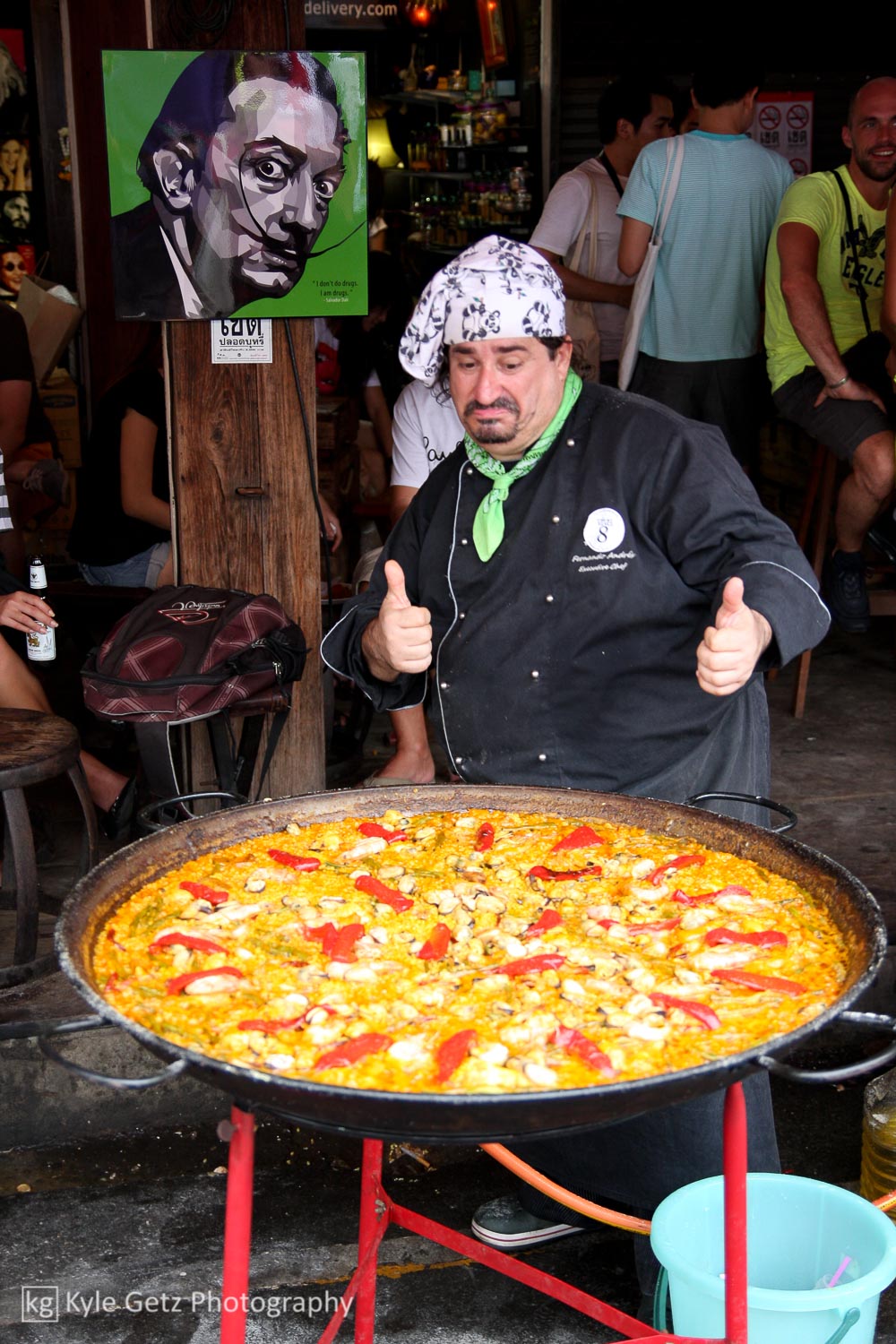 Both Friday and Saturday night we ended up on Khaosan Road, a Westerner-catering shitshow reminiscent of Bourbon Street. The road extends for several blocks and is filled with bars selling cheap beer and buckets of mixed drinks, hookahs, the same American party music played loudly and repeatedly, street vendors with piles of bugs (for eating), racks of cheap clothing, ladyboys, and hawkers trying to convince you to go see ping pong shows. The party goes well into the night and makes for some pretty fantastic people watching. The novelty wears off really quickly though; after one night, you’re pretty annoyed with the entire scene.