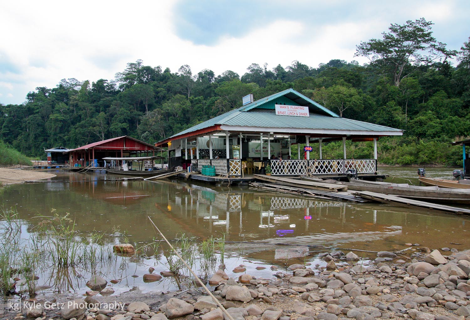 Kuala Tahan is a Malaysian village second and a base camp for adventure travelers first. The vast majority of the village buildings are restaurants or accommodations, mostly guesthouses and hostels. The one distinguishing feature though is that most of the restaurants are floating barges whose entrances are rickety boards of wood slanting up from the rocky shore. When a boat speeds by and its wake hits the barges, you can feel the restaurants bob up and down a little.