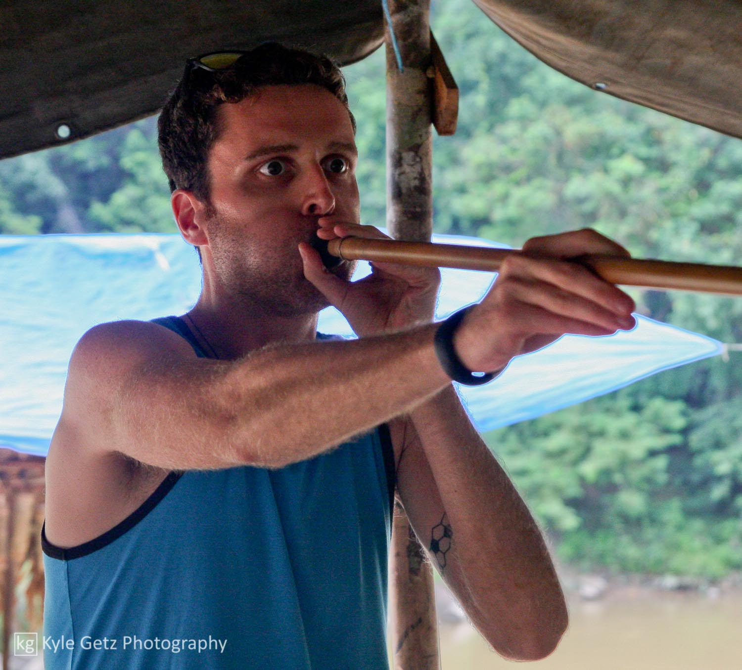 After a strenuous, mostly vertical hike to a small summit and the subsequent exhaustion-induced nap back at my guesthouse, I set out for afternoon activities of visiting a local Malaysian tribe and a boat ride through river rapids. The tribe (Orang Asli) is nomadic and the people are true original Malaysians, complete with their own language and customs independent of everyone else. One of the elders showed us how they make fire and how they make their blowdarts and blowpipes, after which we all got to try our hand at some target practice. Let’s just say I wouldn’t make a very good hunter.