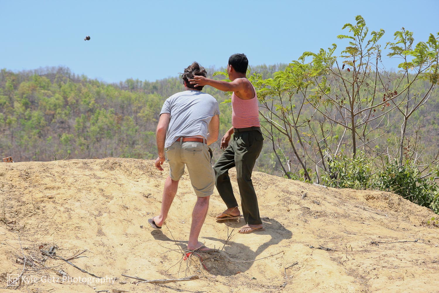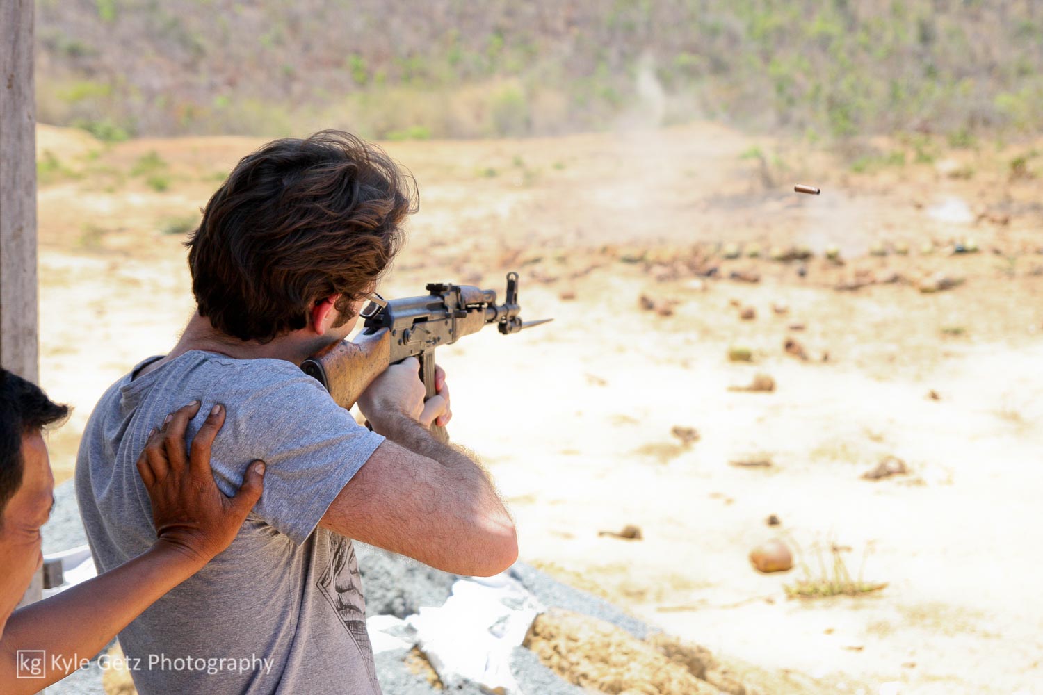 On Saturday, I linked up with Steven – another friend from Chiang Mai – for some good bro time, including a field trip to a military base outside of town. Steven (via his company) organizes trips to the shooting range, where customers can shoot fully automatic rifles at various inanimate objects, shoot RPGs at the mountain, and throw grenades. It just so happened he had a large group of people going, so he invited me to tag along and I offered to take photos. It was all good fun even though I didn’t shoot anything; I think I derived just as much satisfaction from watching others do it. And you don’t have to be the one pulling the pin to appreciate the force from a grenade that explodes nearby.