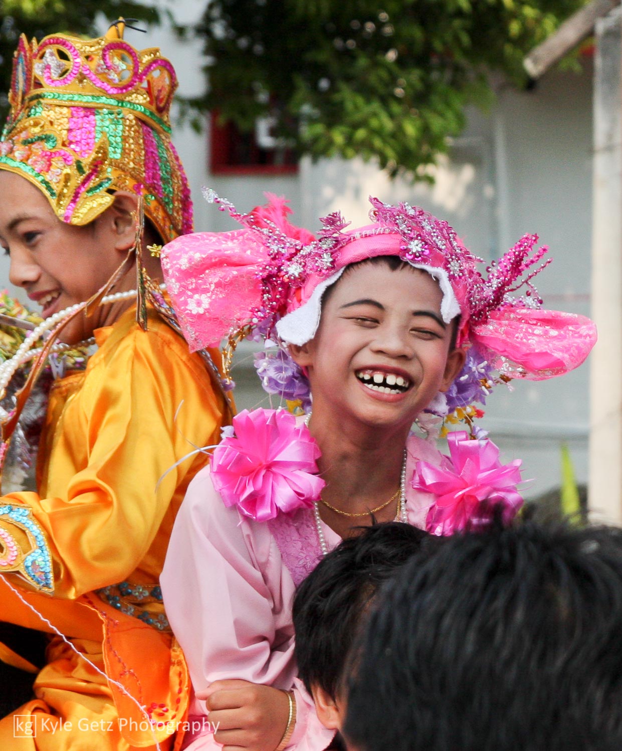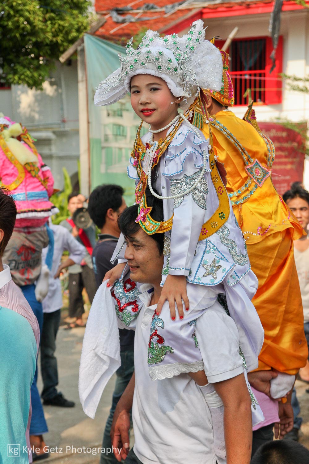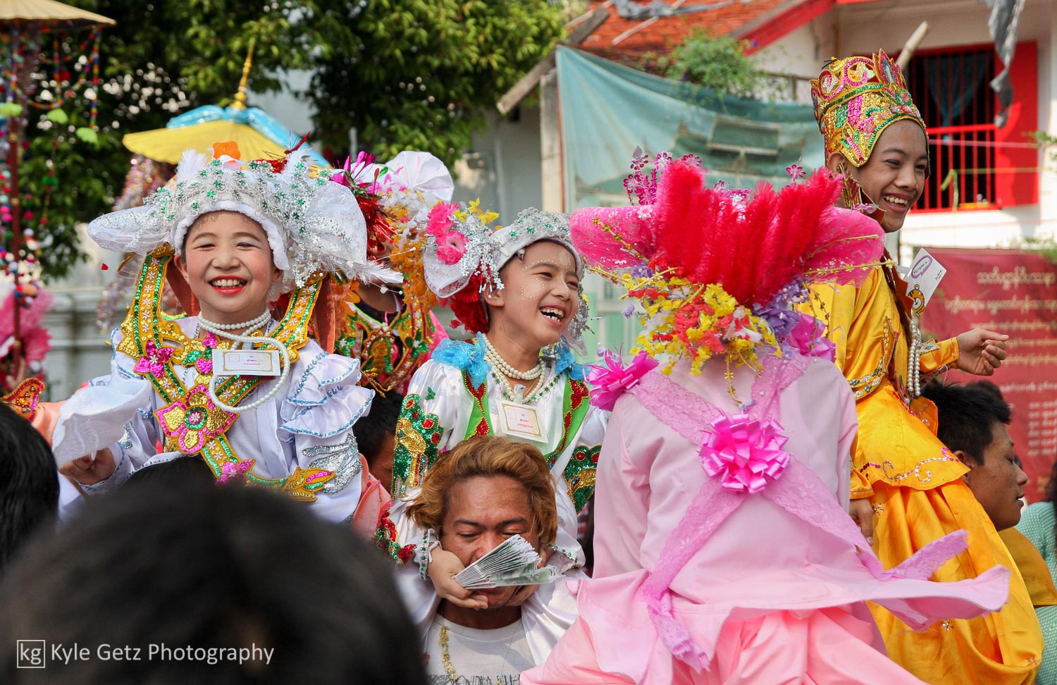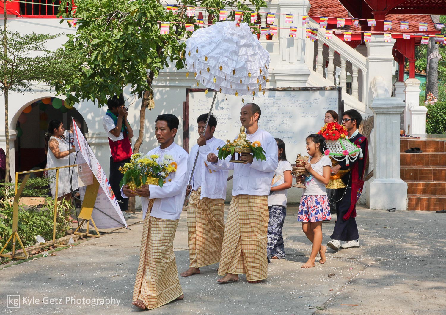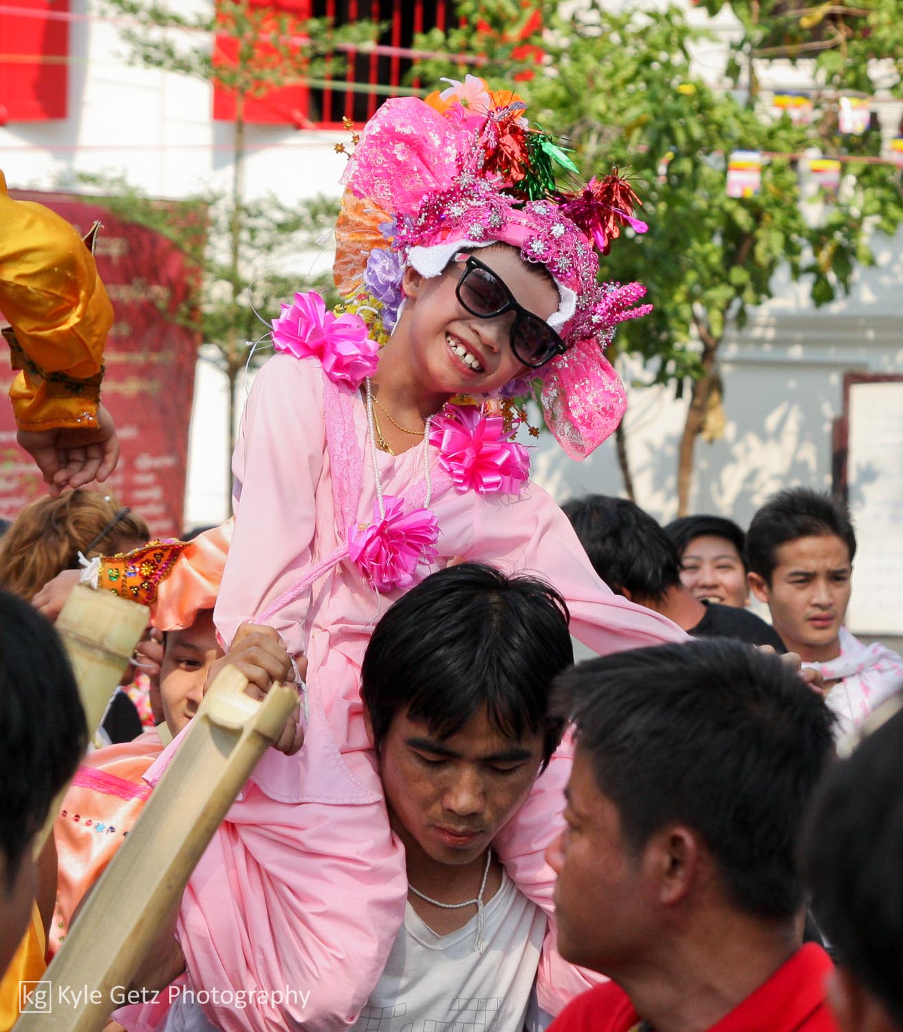 Somewhere in the middle of my work schedule, my friend Roseanne, who I met though Friends For Asia, came back to Chiang Mai after some travel so she could spend a week at a Burmese Buddhist temple. During her time there, she invited me to come to the temple to witness a shinbyu, a traditional ceremony celebrating the boys that are about to start their Buddhist education. The boys – always under the age of 20, but often much younger – wear traditional outfits and makeup (making them look more like little girls) and ride on the shoulders of Burmese men who make music and dance and thrash around. One of the men convinced me to try some kwun-ya, a popular chewing habit among Burmese (both men and women) consisting mainly of betel leaf, areca nut, and tobacco. I wasn’t too crazy about it though. I like my teeth white!