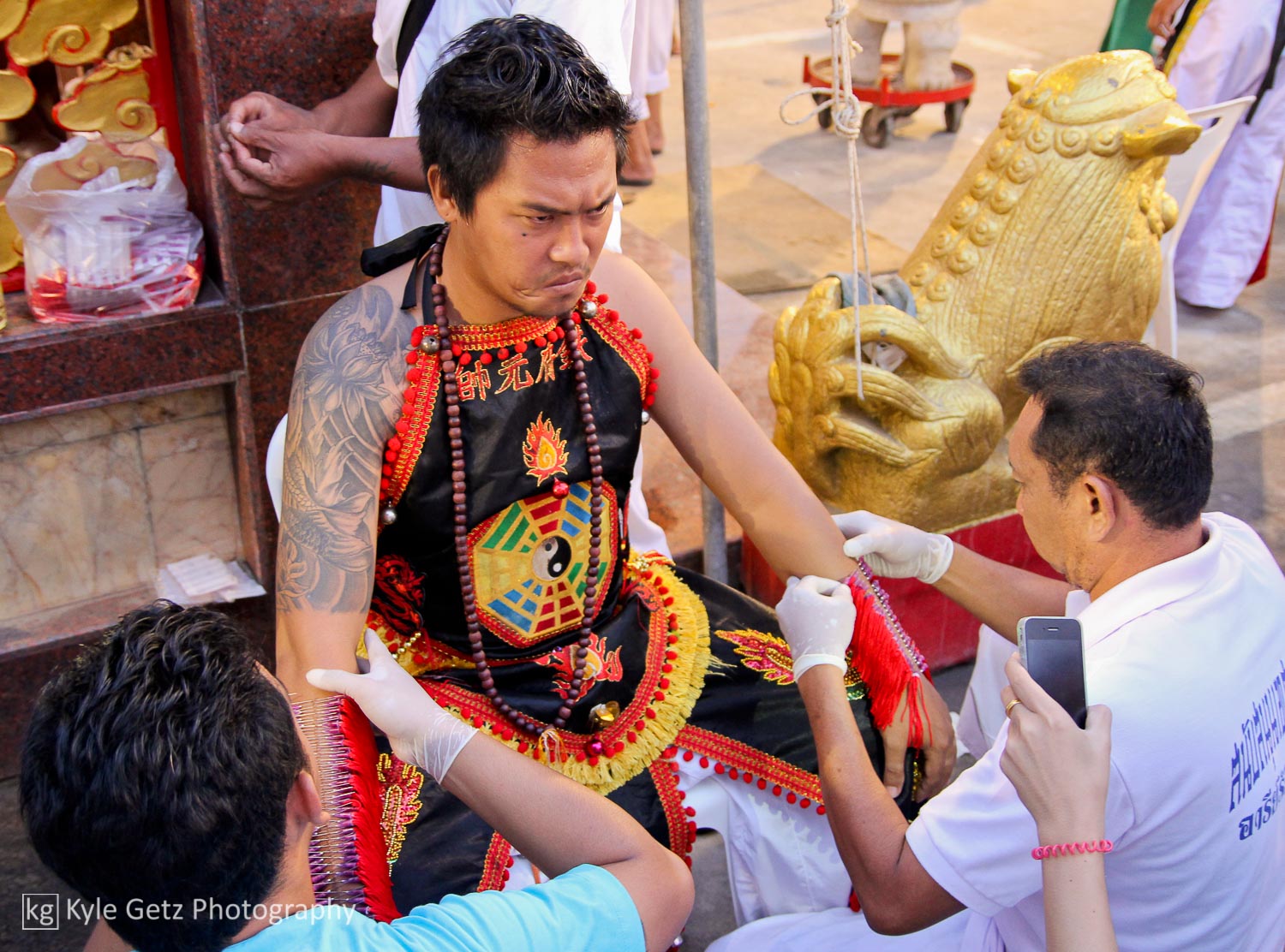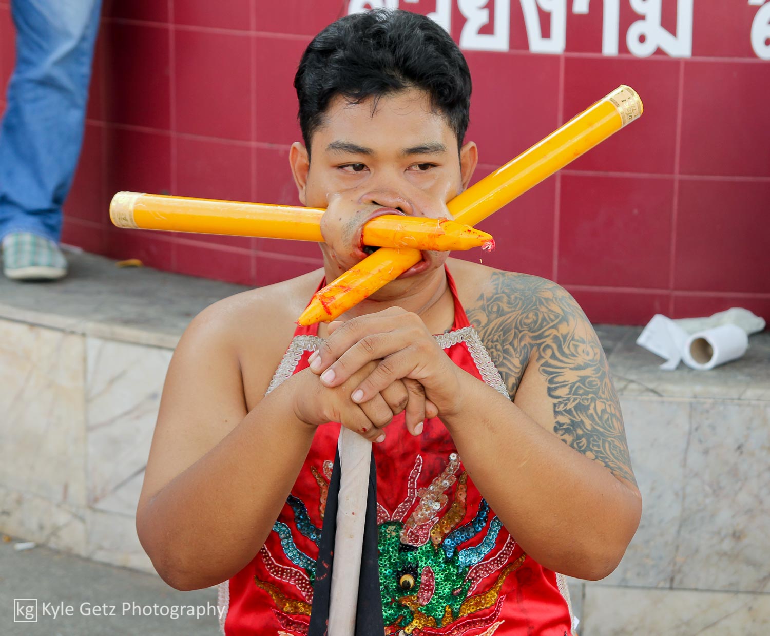 The story of my attendance at this festival actually goes back almost a year. During my last trip through Southeast Asia, I had read about the vegetarian festival, but after it had already happened. Once I learned more about what happened there and saw some photos from it, I immediately put it on my list of things to see if I was back in Thailand at the right time. Conveniently, my last wedding obligation of the summer was only a couple weeks before the start of the festival, so I took it as a sign that I was meant to go.