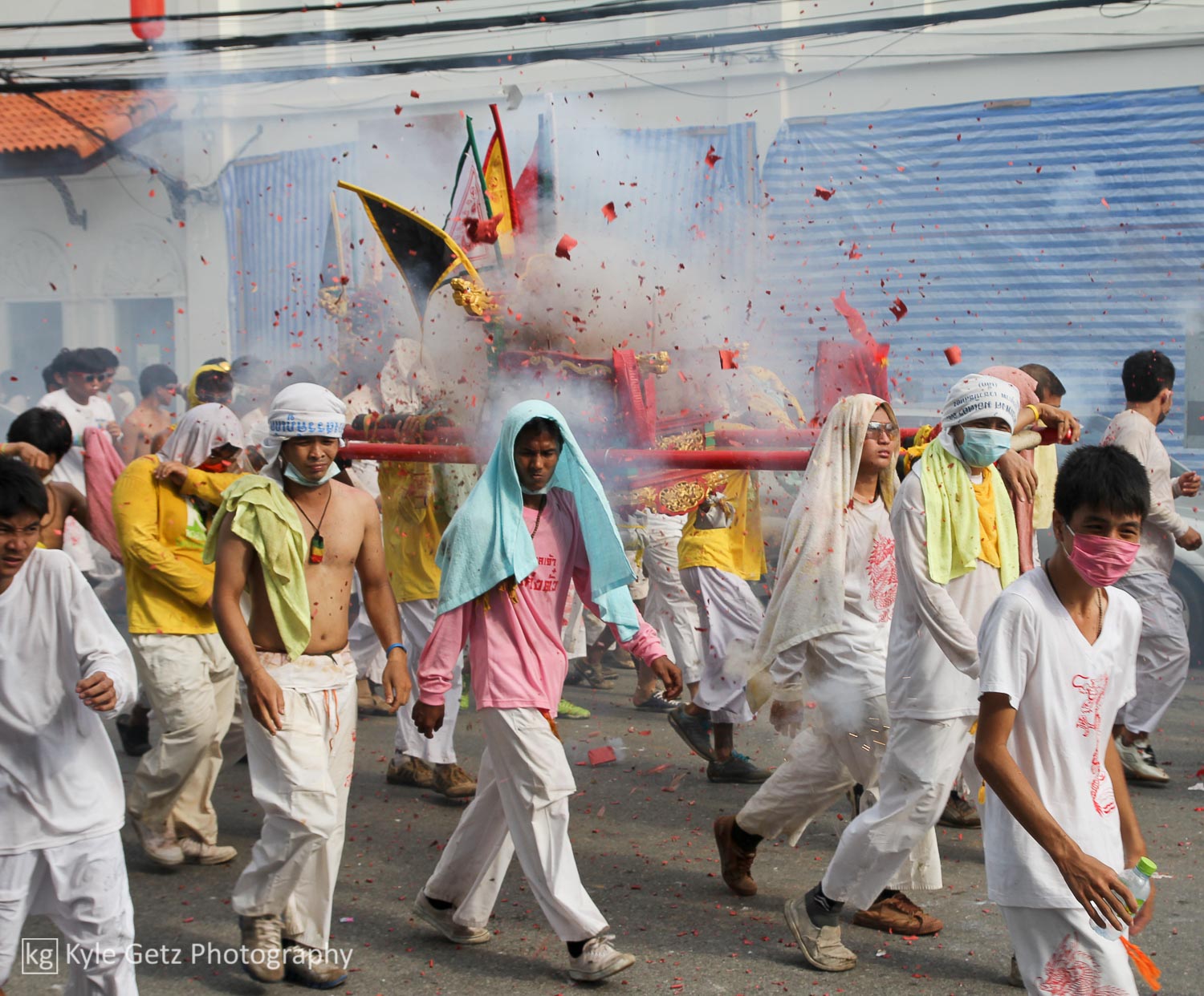 All of the video I shot comes from two of the processions and most of the footage is from the last night of the festival. Parts of Old Phuket felt like warzones; the smoke was so dense, you could barely see across the street.