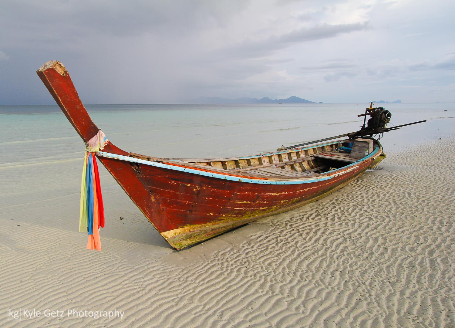 After extending our stay for one more precious day in paradise, we boarded an early morning ferry destined for the Trang islands, a loosely-related clump of islands to the south-east that are a bit far from the normal tourist track. Based on Lonely Planet descriptions, we settled on Koh Kradan, a very small, quiet island that is still conveniently serviced by the Tigerline ferry. After a couple stops at other islands, the ferry stopped again at a seemingly arbitrary spot in the middle of the ocean, where we transferred to a waiting long-tail boat for an hour-long ride to the island itself.