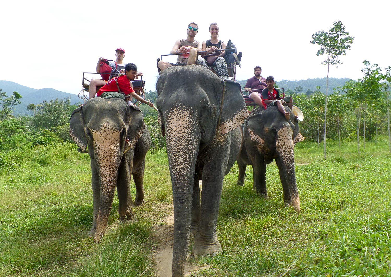 Our only real excursion was going to an elephant park (appropriate for Koh Chang, which translates as “Elephant Island”) on the second day, where we rode and swam with the elephants. I’ll fully admit that I’m not sold on the morality of such places – especially since the mahouts tried to secretly sell us pieces of ivory jewelry during our tour – but swimming with elephants and riding on the back of one in the water is pretty freaking awesome.
