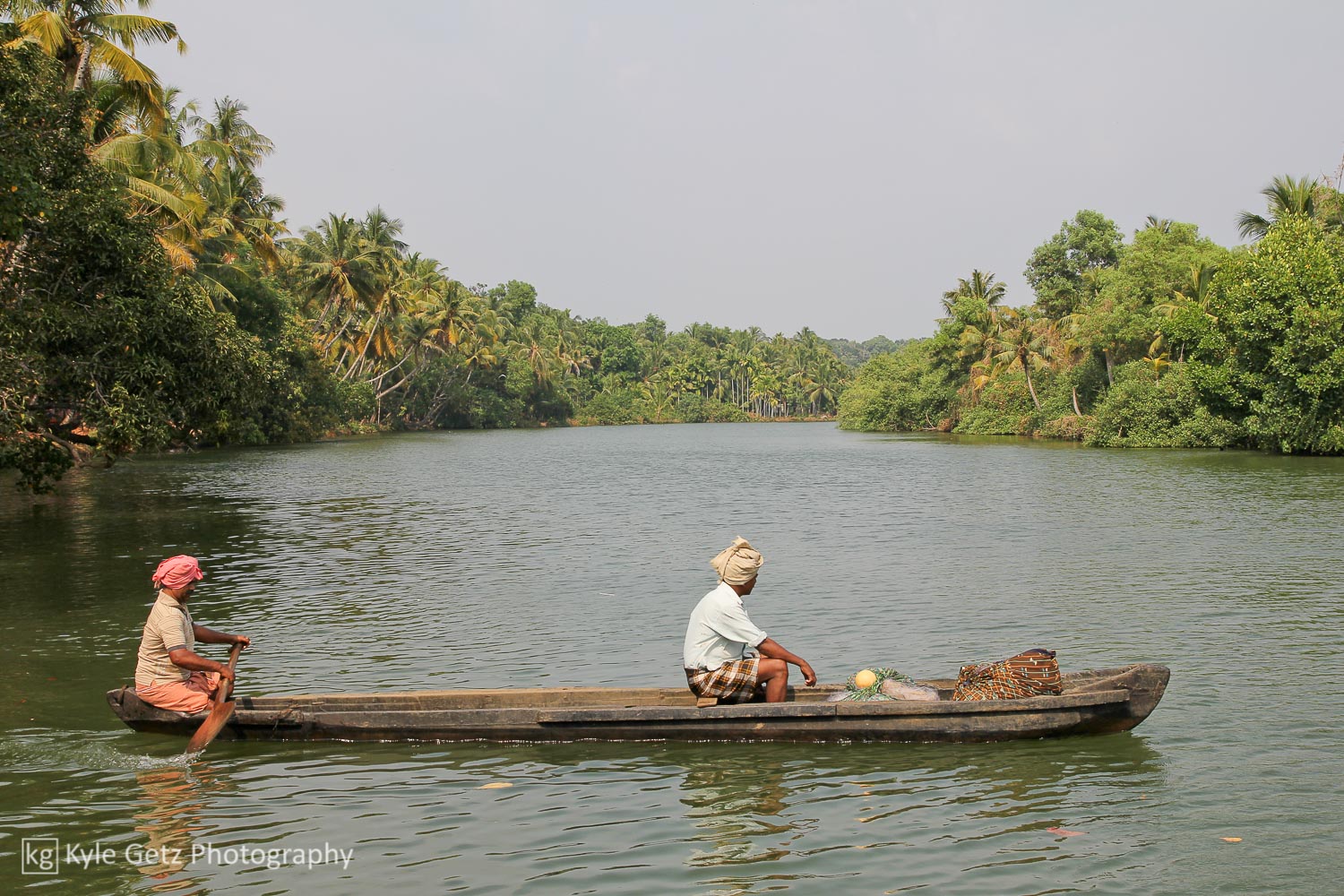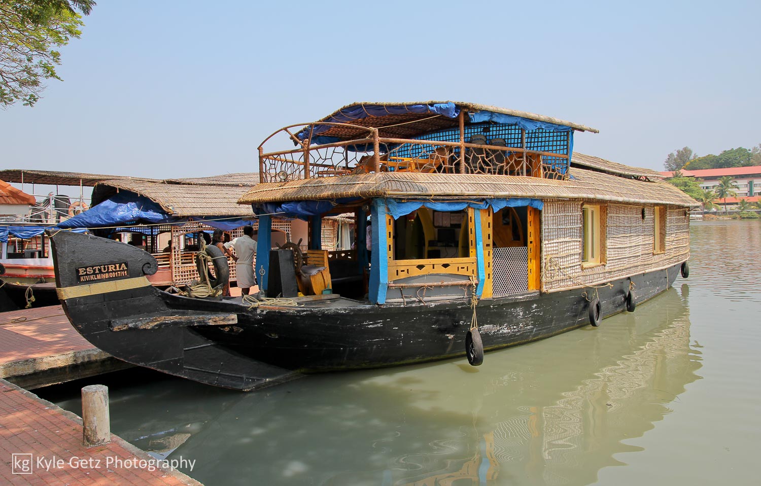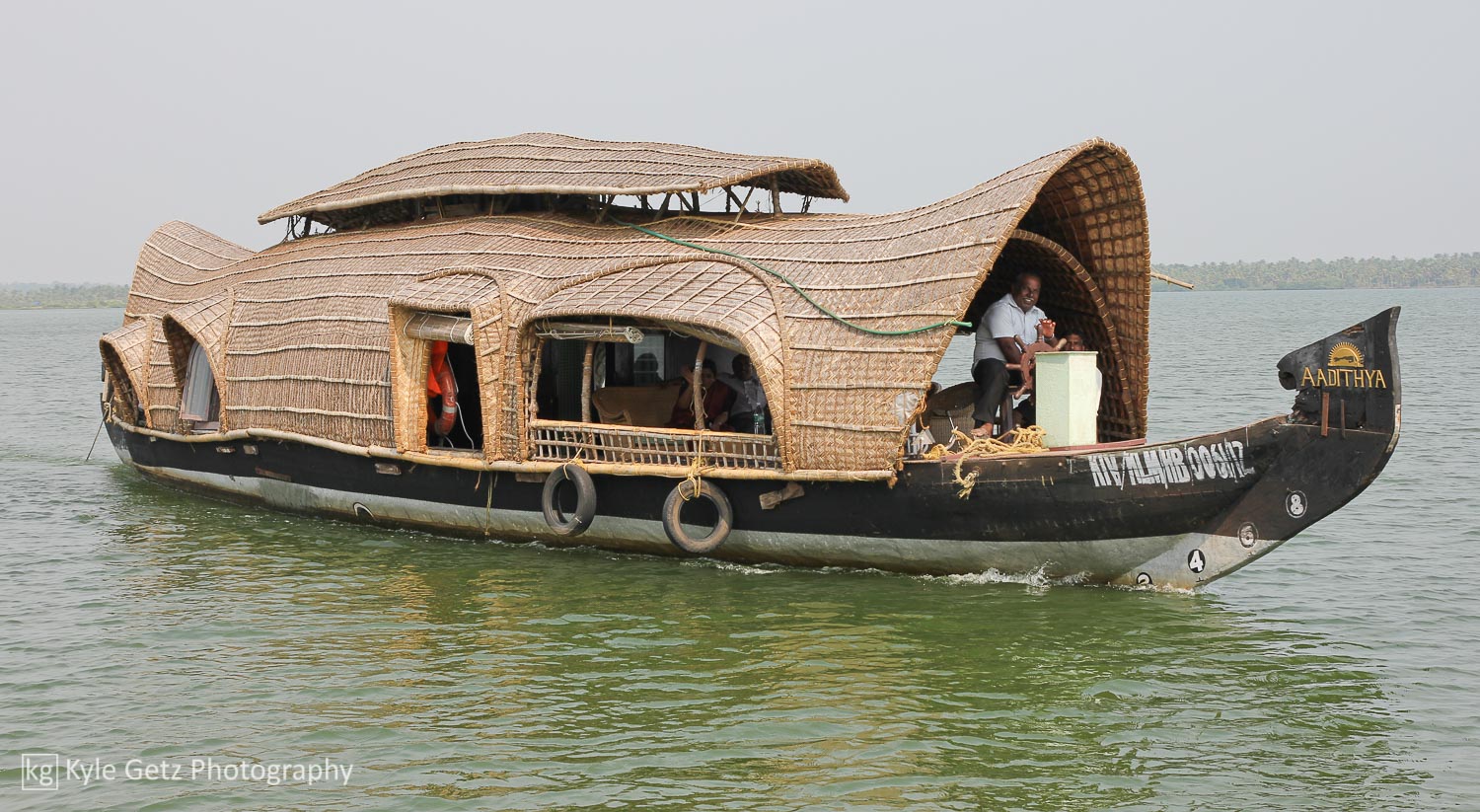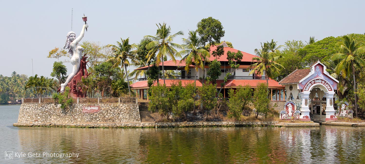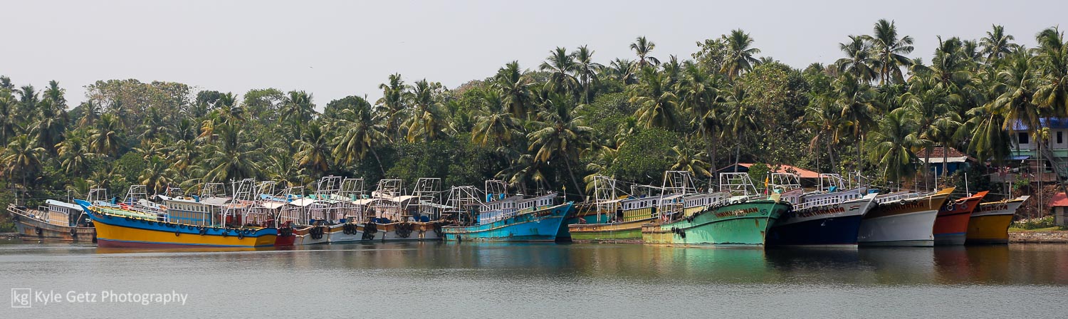 After four peaceful days in Varkala, we took a taxi to Kollam for our overnight houseboat trip through the backwaters, a must-do activity for any tourist in Kerala. Our staff of three (captain, chef, and general assistant) took us to Ashtamudi Lake and then through many miles of the connected channels before docking for the evening. Most of our time was spent sitting in comfortable chairs on the upper deck, sipping masala chai, and watching the palm trees on the shore slowly pass by as the houseboat puttered along the quiet, empty canals. We’d occasionally pass other houseboats or fishing boats, but for the most part, the backwaters were free of traffic. We passed Chinese fishing nets, high-end hotels showing off their waterfront locations, simple homes and villages, trash fires, groups of young men practicing on musical instruments, children playing and screaming, and men in canoes running their daily errands.