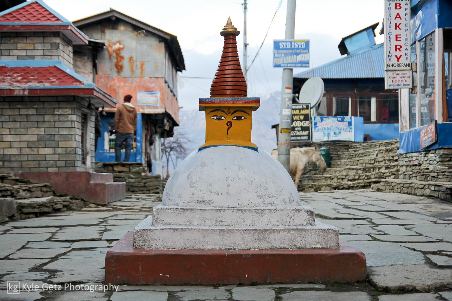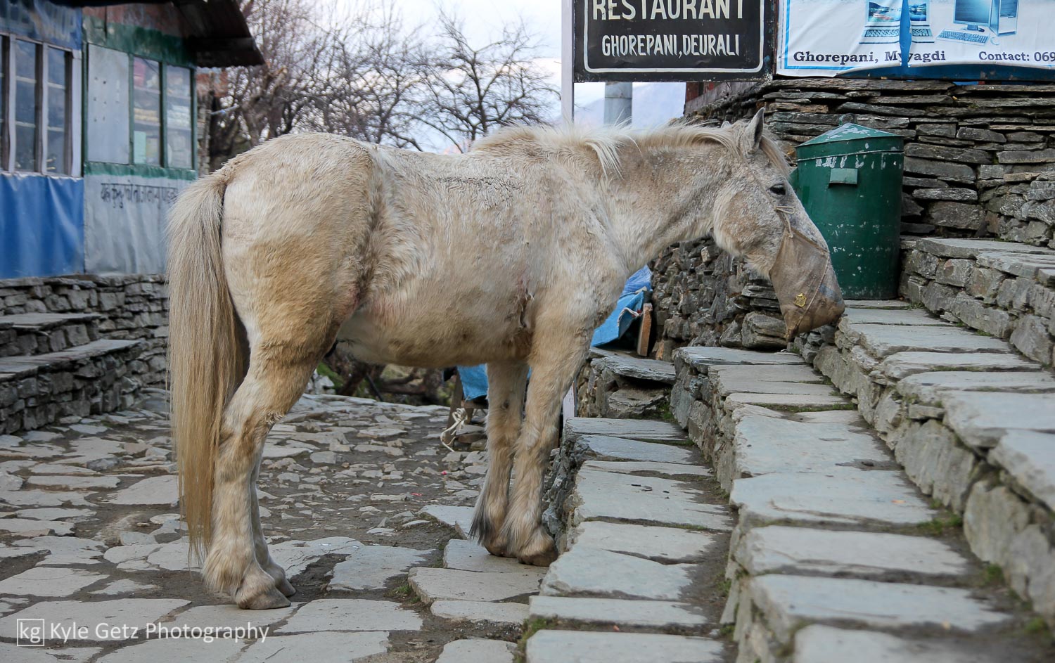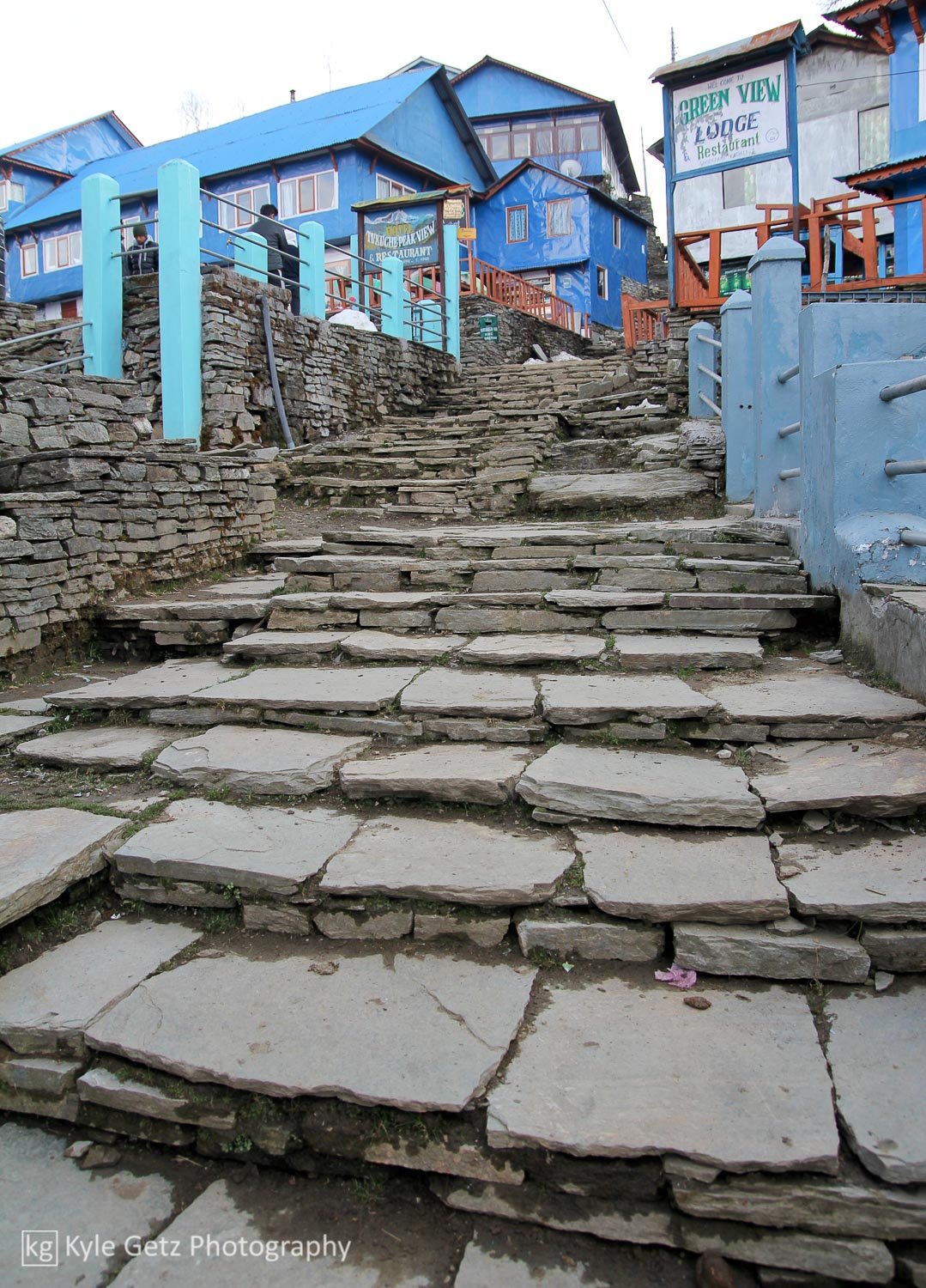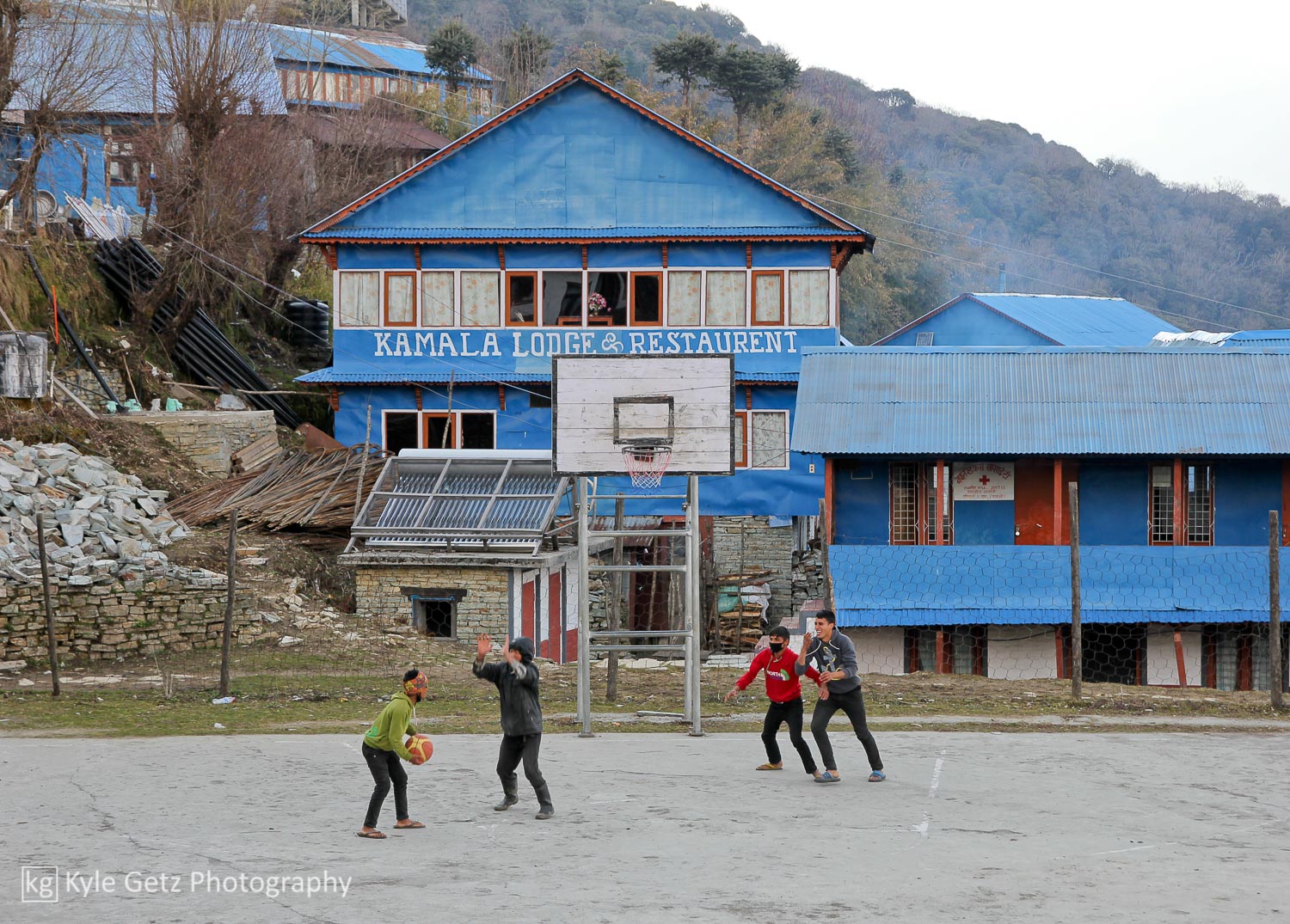 Ghorepani was easily the coldest location of the entire trek (there was snow on the ground), so after my shower I put on almost all of the clothes I had brought with me. The electricity was out (classic Nepal), so without much else to do, I ventured out with my camera and tried to capture some photos of daily life in the mountain villages. I was quite amused by the local basketball court and the group of boys using it appropriately. I found out later from Sandip that basketball and volleyball are popular in Nepal because they take up the least amount of space, an important consideration in a country that is dominated by hills and mountains and generally uneven terrain.