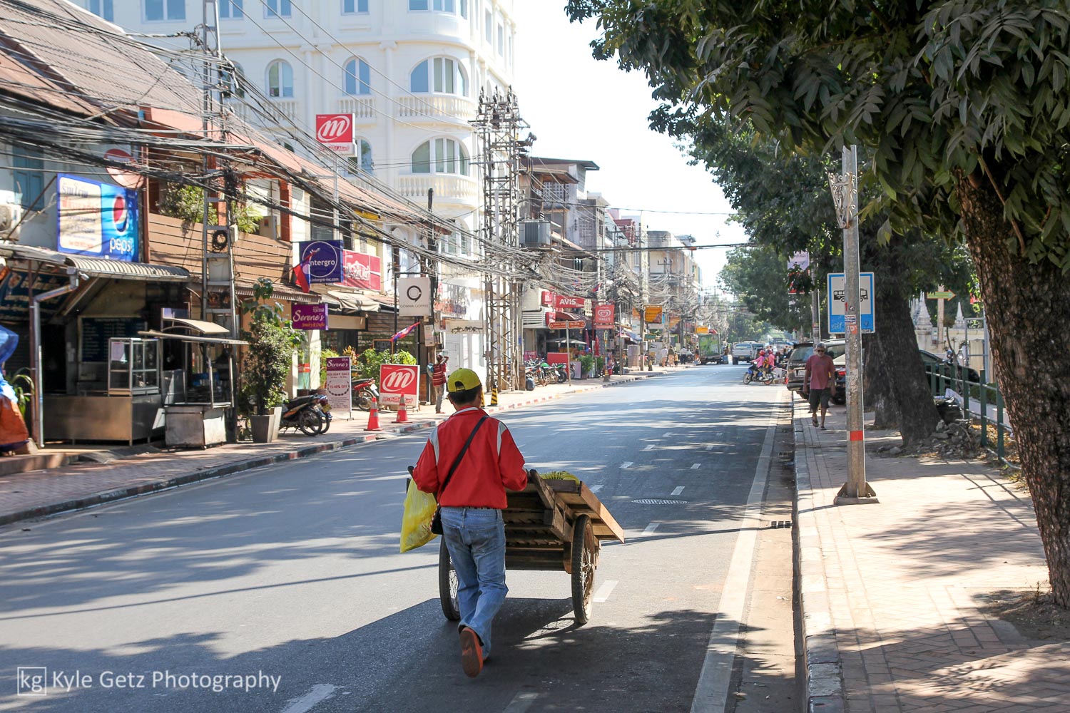 After leaving the temple, I wandered town with my camera for a bit, trying to get a sense of the city’s atmosphere. Even though it was December, it was still at least 90°F, so I wrapped up my strolling before the hottest part of the day. Like Luang Prabang, Vientiane is undeniably Southeast Asian with a kiss of French influence, but definitely more of a city and less of a quiet cultural escape.