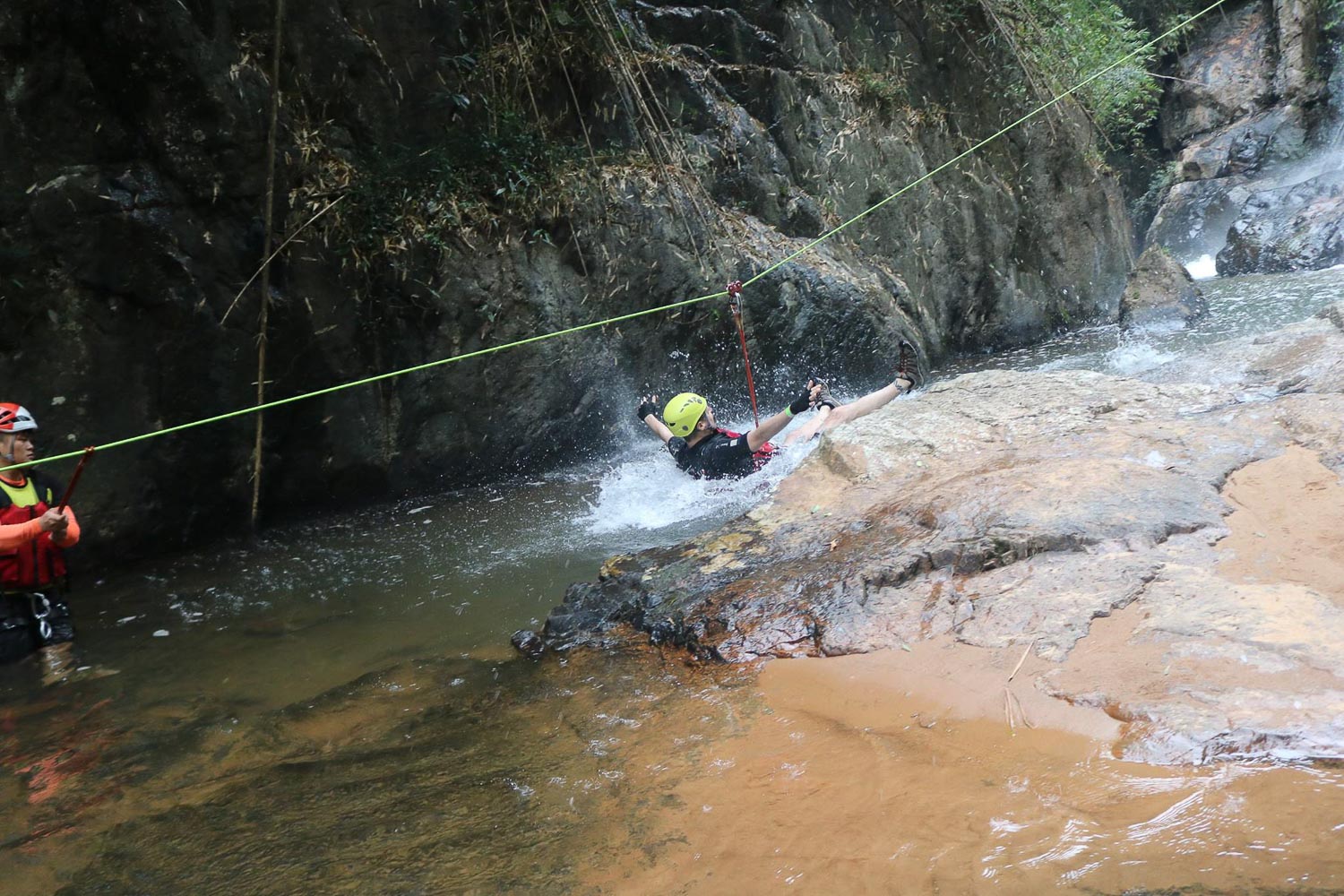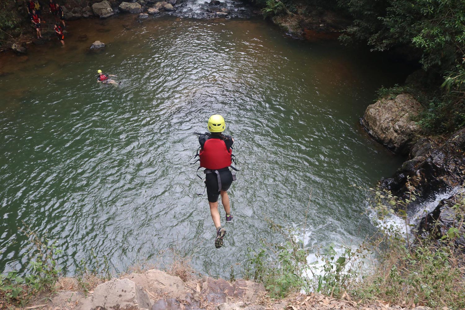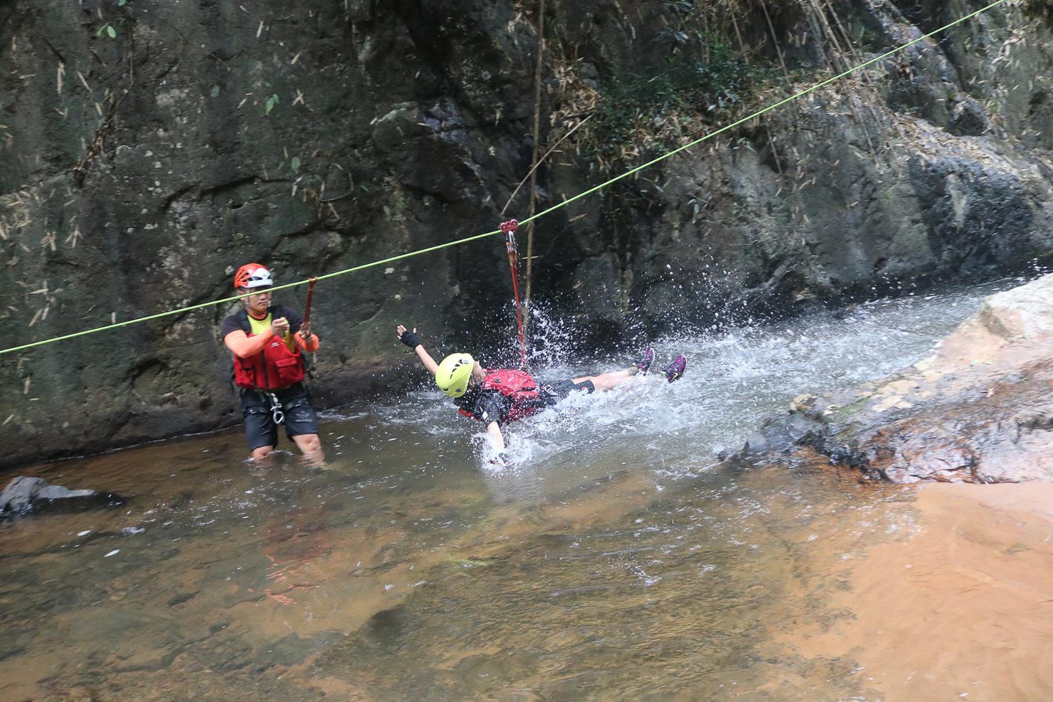 The instructions for this descent were different than the first one. In addition to being clipped into our usual rappelling line, we also had to attach ourselves to the zipline. We descended normally down the cliff until the guides told us to stop, at which point they counted to three and we released the rope entirely, letting the zipline take us down into the river. It was just as awesome as it sounds.