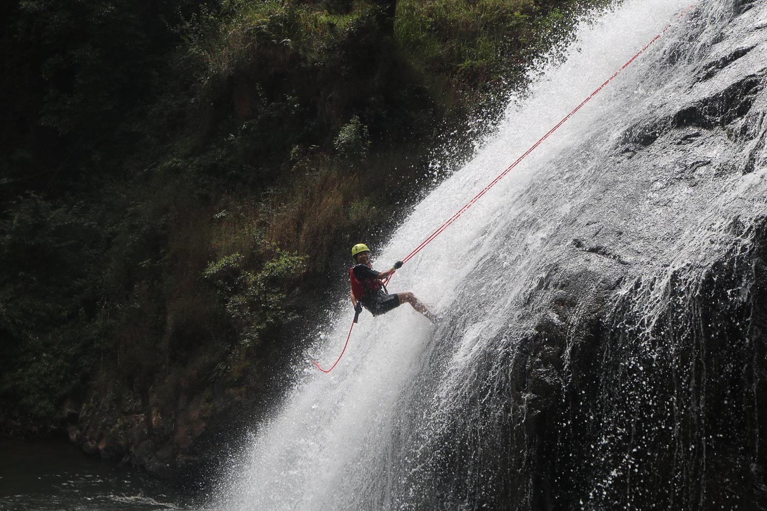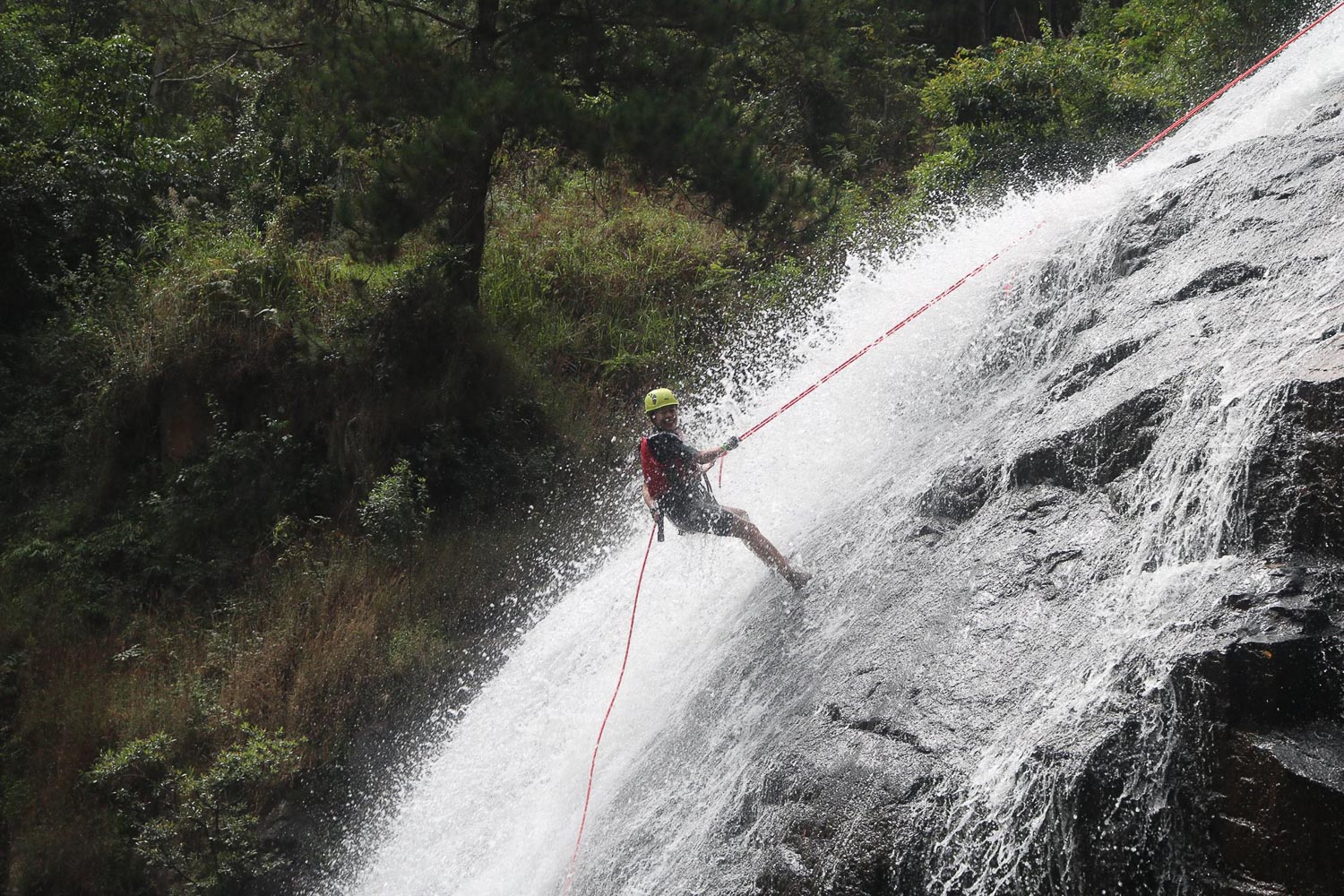 Fast forward to our first morning in Dalat. Laurie and I are at the office of Highland Sport Travel so we can pay for the next day’s activities. It was at this point, sitting in the office and looking at the posters and listening to the guides explain the activities, that I realized what she had signed us up for. Sure, there was some trekking, but there was also a lot of talk about wetsuits. And rappelling down cliffs and waterfalls. And swimming in a river. In cold mountain weather.