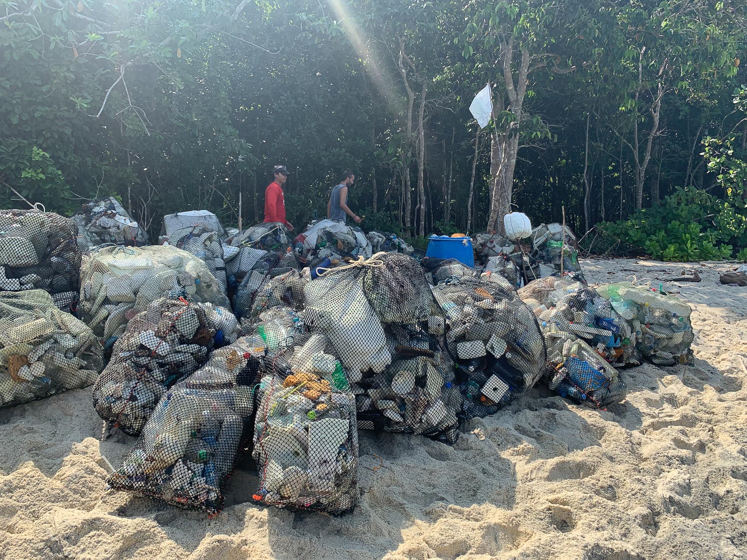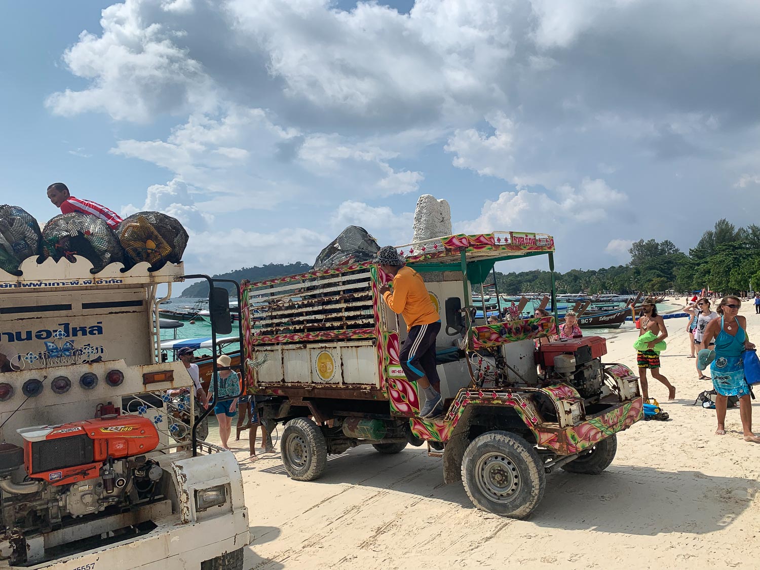 On our day volunteering, we spent almost an hour riding to the north coast of Koh Rawi, one of Koh Lipe’s larger, but uninhabited, neighbors. We all worked up quite a sweat picking up garbage for an hour on the edge of the jungle, but were rewarded with a plunge in the ocean when we were finished. It was disheartening to see so much garbage that had washed up onshore: mostly plastic and foam, but also a lot of light bulbs, oddly. Even though so much trash was left behind after we had filled up all our bags, it was pretty satisfying to haul away enough to fill two dump trucks. I couldn’t help but notice the irony of the trucks spewing a ton of smoke into the air, so I guess we’re trading trash for air pollution?