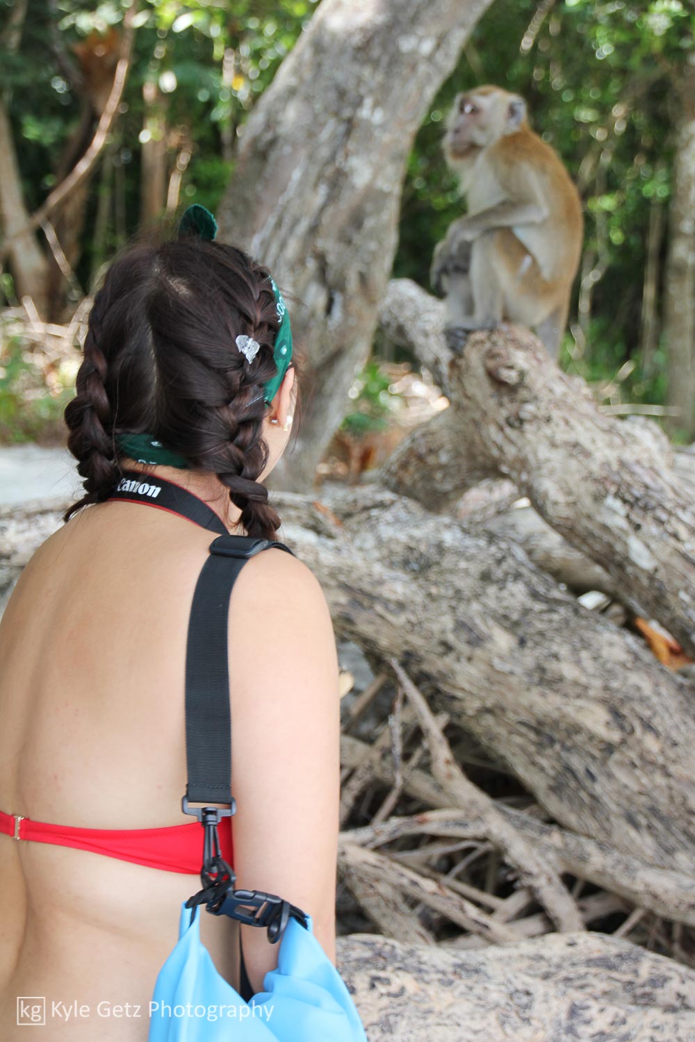 For our only big activity on Koh Lipe, we hired a boat and a driver to take us on an afternoon trip to a few beaches on the other islands. We stopped for swimming at a couple nice beaches, but the main attraction was clearly Monkey Beach, named for its citizens, who hunt for scraps of people food and scamper around the beach to the delight of camera-toting tourists.
